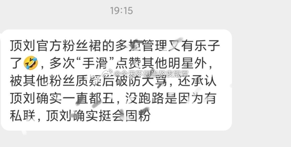tg. 刘宇宁官方粉丝👗的乐子🍉,管理员被发现“手滑”点攒其他明星,被散粉问责后贴脸开大。。。官👗管理还自称顶刘私聊安慰自己???