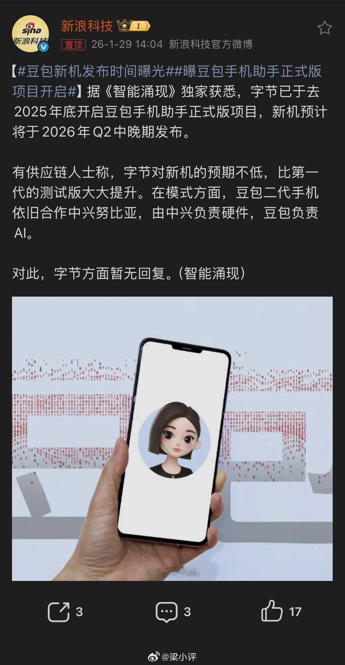 曝豆包手机助手正式版项目开启说是2026年4-6月期间发布,但是字节没有回应只能坐等了,说真的,当时没有把锤子手机业务关闭就好了,可是没有如果,时光不能倒流