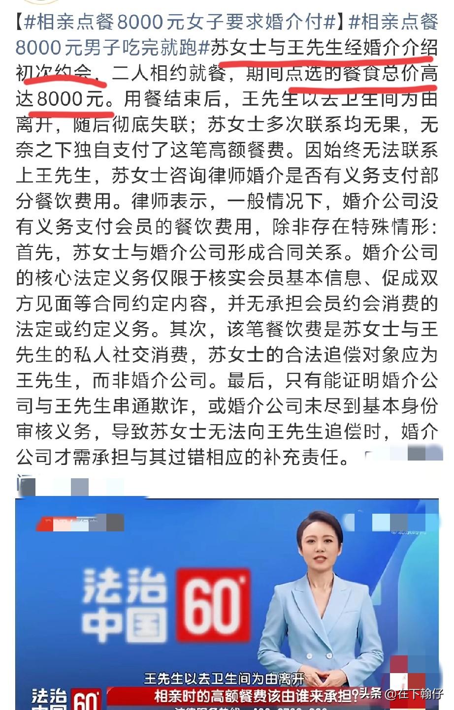 近日,一则相亲消费纠纷引发热议。苏女士与王先生经婚介安排初次见面,两人在某餐厅消