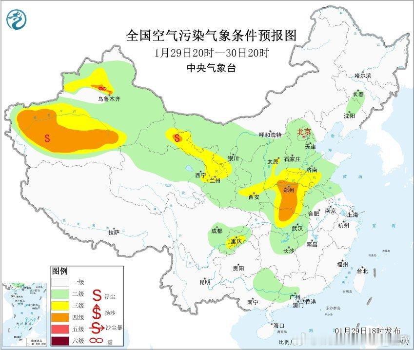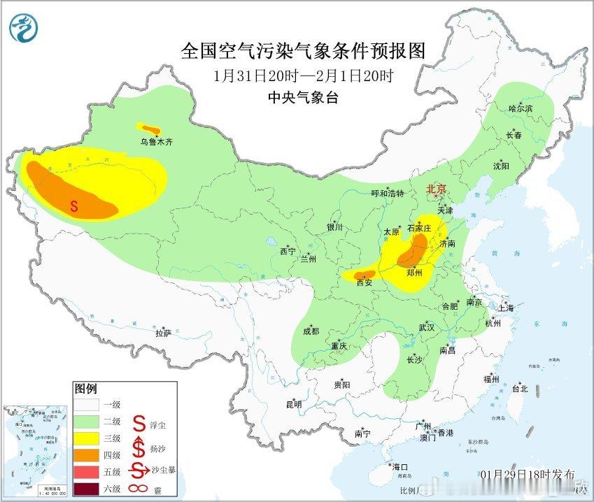 【霾暂时缩减】因为降水和冷空气的清除作用,今天霾已有所减少,预计1月29日夜间,华北南部、黄淮西部、汾渭平原、江汉等地大气扩散条件逐渐转好,上述地区霾天气减弱或消散。但冷空气过后,2月1日起,华北中南部、黄淮中西部、汾渭平原等地大气扩散条件逐渐转差,部分地区将有轻至中度霾。