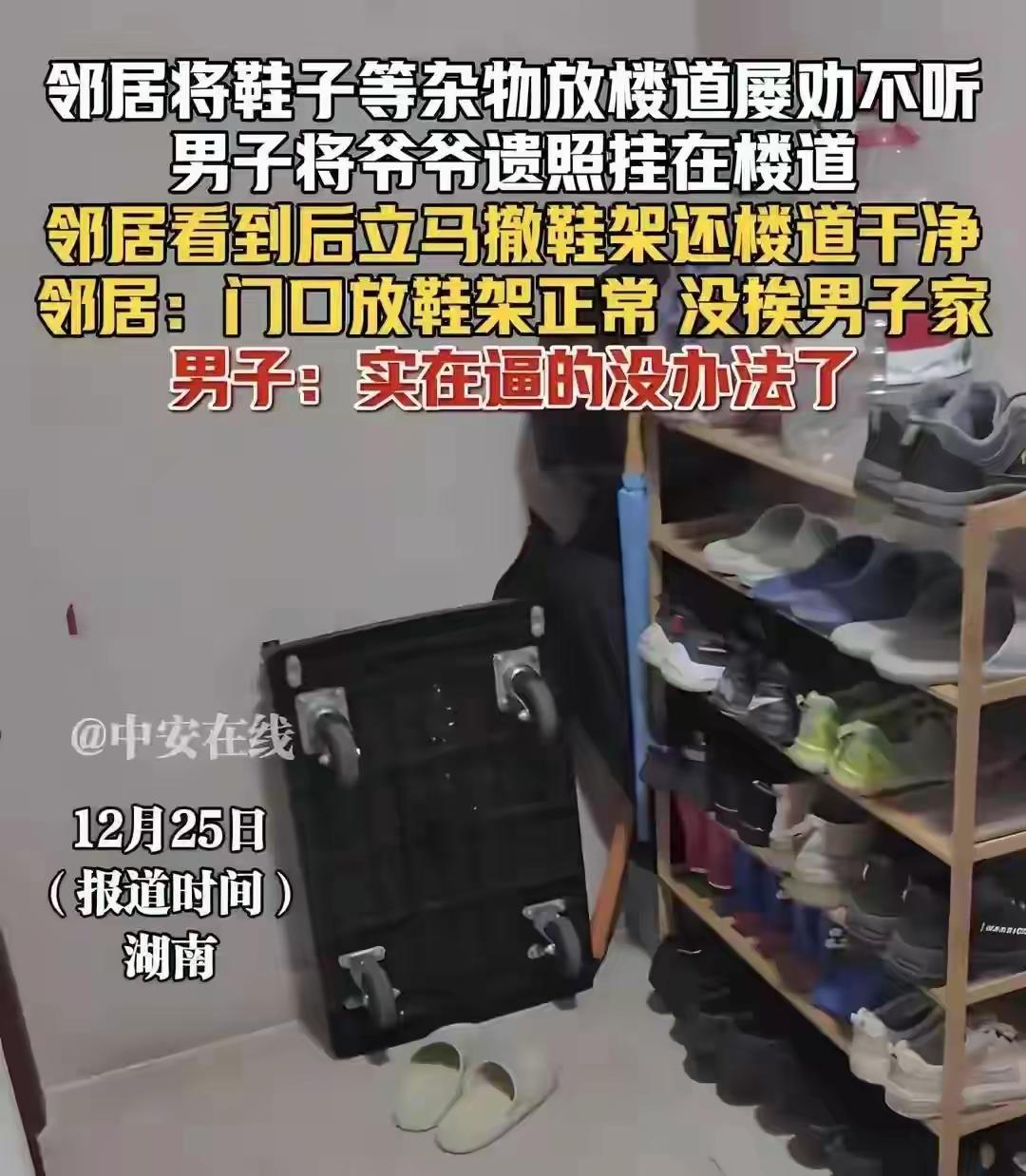 挂遗照逼邻清杂物后续:楼道通了人不服!房主:我是真被逼疯了 事情还没完,反而越演越烈。原本只是一场邻里之间的“清理战”,却在细节中折射出人性的复杂与无奈。那位房主坚称自己“被逼疯了”,而邻居们的反应,也让人深思:到底什么才是真正的“理”? 事情的起因很简单:楼道里堆满了杂物,影响了大家的出行和安全。房主决定挂上遗照,象征“亡者在天之灵”,希望借此吓退邻居,促使他们清理杂物。这个做法一开始确实奏效,楼道变得干净整洁,但随之而来的,却是邻居们的强烈反弹。 有人觉得房主的做法太过激烈,甚至觉得“挂遗照”像是在威胁大家,伤害了邻里之的感情。有人质疑:“这是为了安全,还是为了发泄?难道不能用更理性的方式解决问题?”而房主则坚称:“我不是在吓唬谁,我只是用我能想到的最有效的方法,让他们知道事情的严重性。” 从表面看,这似乎是一场“善意的提醒”,但深入一层,却折射出更多的社会现象。有人说,房主的极端做法反映了当下社区管理的无奈:面对难以沟通的邻里关系,很多人选择了极端的“自我表达”。而邻居们的反应,也揭示了一个现实:在现代都市生活中,人与人之间的信任和理解,变得越来越脆弱。 更令人心疼的是,房主的“被逼疯”背后,隐藏着无数家庭的焦虑与无助。生活压力大,邻里关系紧张,大家都在用自己的方式寻找出路。有人选择了沉默,有人选择了对抗,而有人则像房主一样,走到了极端。 这场风波,或许只是千千万万个都市家庭中的一个缩影。它让我们不得不反思:在快节奏的生活中,我们是否还记得那份最初的善意?我们是否还能用理性和温暖去化解矛盾?还是说,越来越多的人,像房主一样,走上了“极端”的道路? 最后,希望每一个在城市中打拼的人,都能在压力与矛盾中找到一份平衡。毕竟,邻里之间的和谐,才是真正的城市温度。让我们用理解和包容,点亮彼此的心灯,而不是用“遗照”来吓唬邻居。因为,只有心怀善意的城市,才能温暖每一个人的归宿。楼道纠纷 楼道遗照