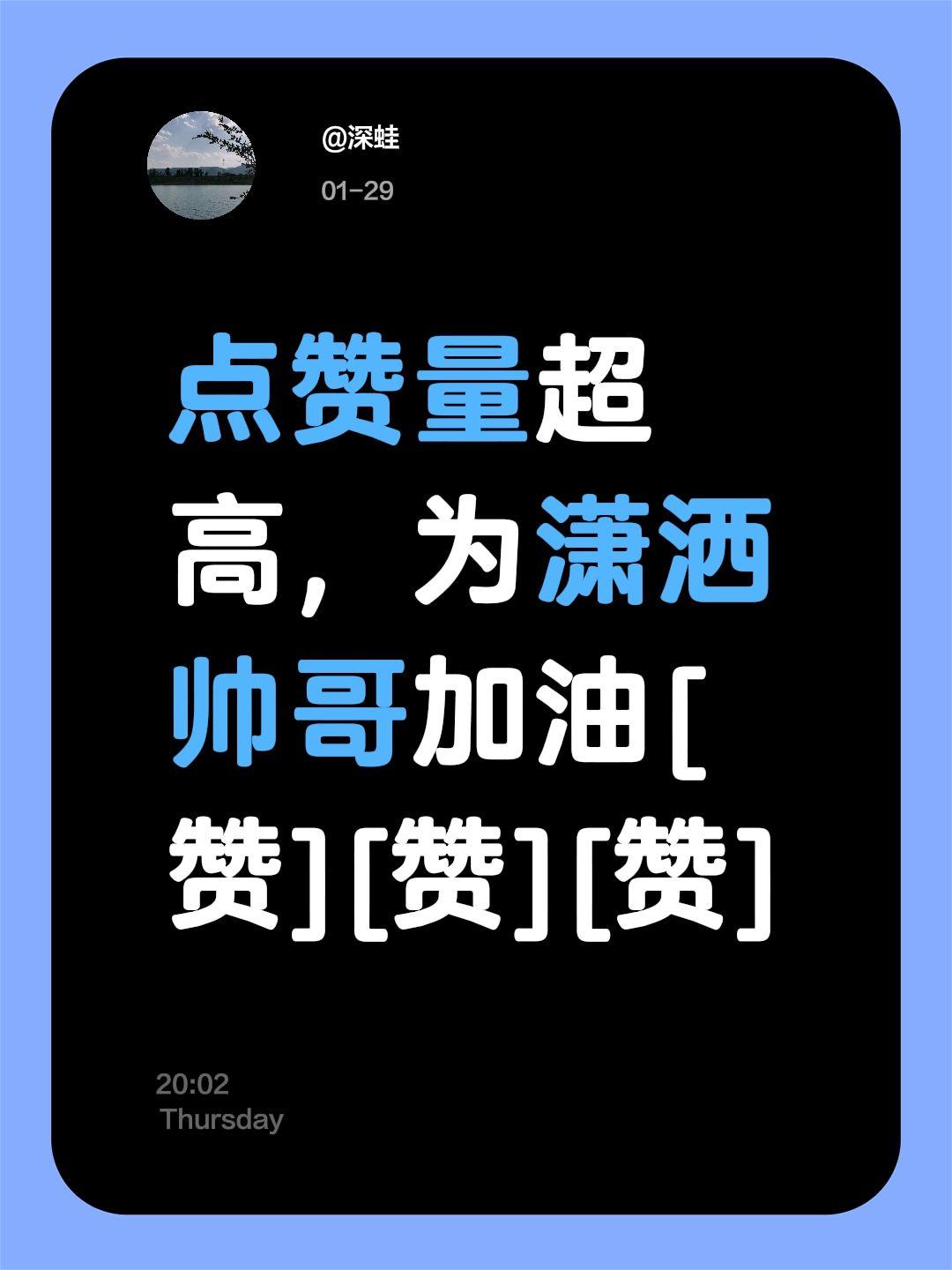 我评论了@榆次任 的作品: 点赞量超高,为潇洒帅哥加油[赞][赞][赞]