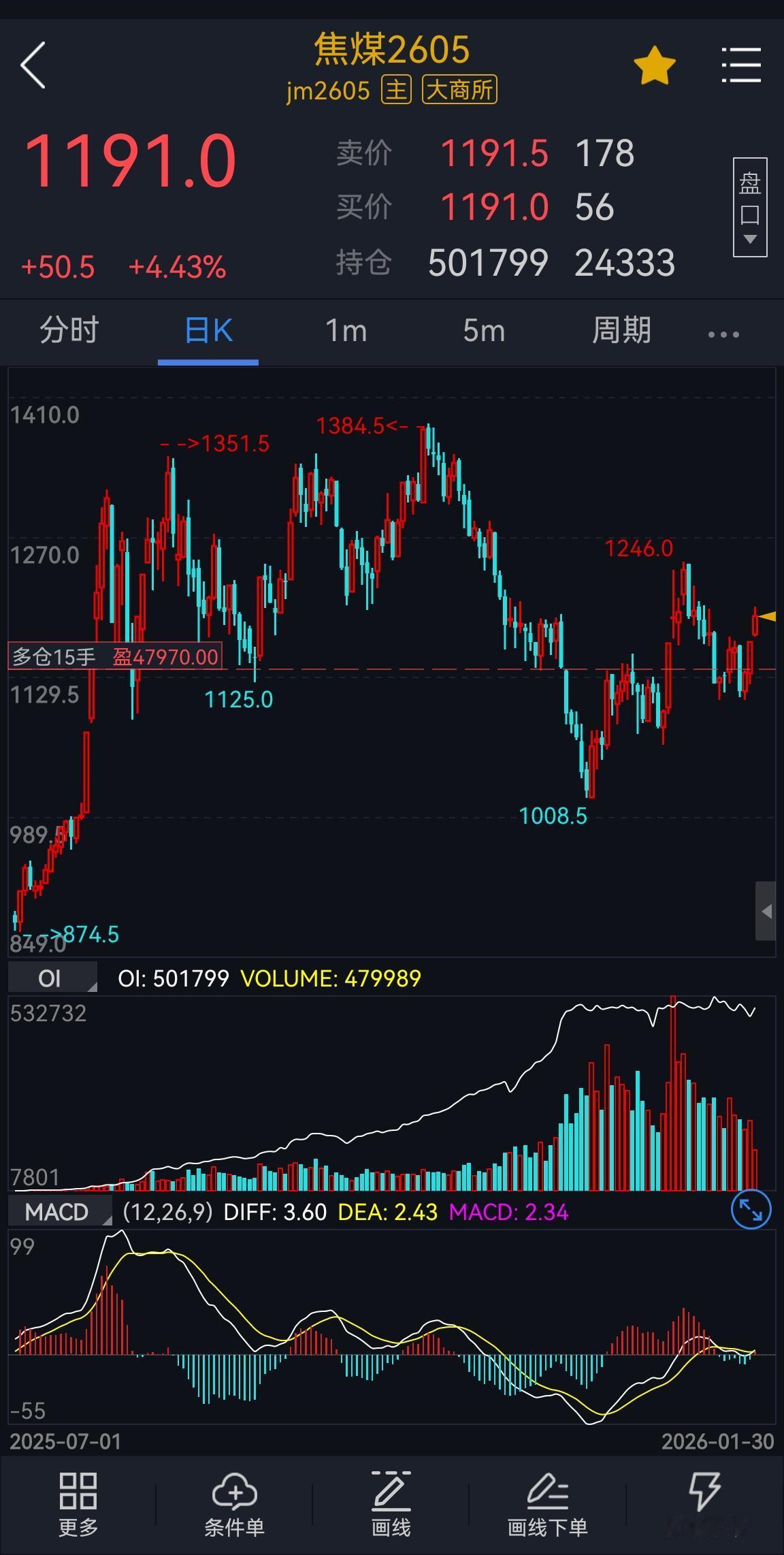 焦煤期货: 印尼RKAB审批迟滞叠加税收传闻,印尼煤炭货源现货供应或趋紧; 印度政府,将炼焦煤列为关键和战略矿产; 澳洲优质焦煤价格持续攀升,供给紧张支撑市场情绪,但市场对后市价格持稳预期,全球焦煤贸易格局或将迎来新变化。 国内方面,当前焦煤基本面偏中性,技术面呈现区间内的震荡偏强,主力2605合约,前面持仓的多头,第一个阶段目前就是1200附近,然后再继续看前高。