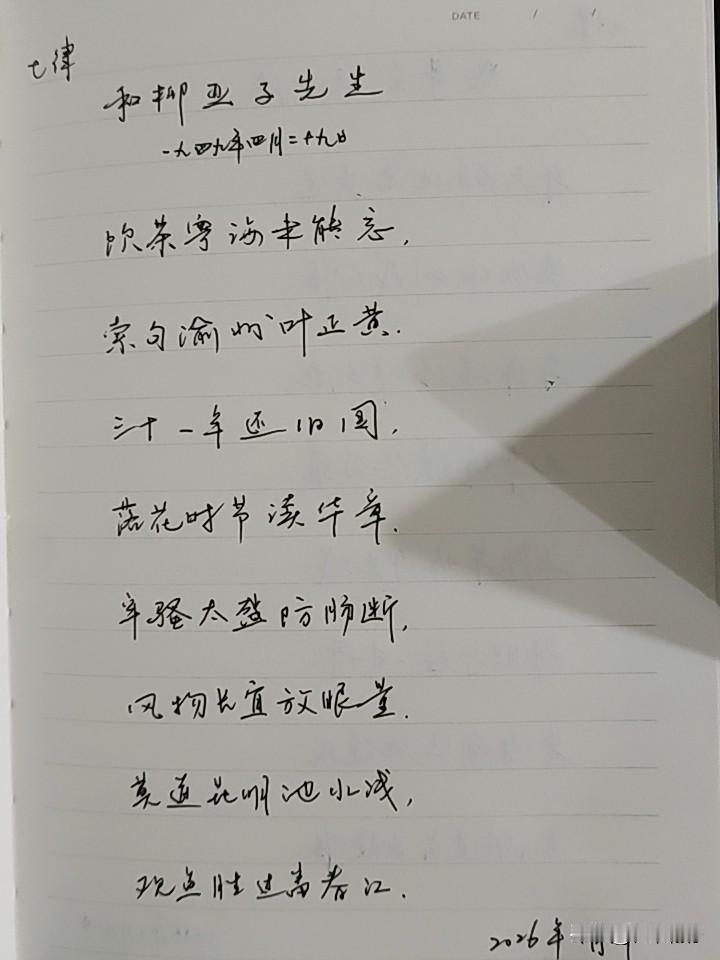 抄书第 1074天(2026年1月29日) 静心✔ 戒浮躁,一笔一划。 今天继续抄《毛泽东诗词集》之《七律·和柳亚子先生》,这是近代诗人毛泽东于1949年4月29日所写的一首诗。 语言温婉含蓄,情理交融,既有古典诗的雅致,又带白话的亲切。从私人情谊切入,逐步上升到对时代责任的呼唤,这首诗不仅是毛泽东诗词中“以文化人”的典范,也是中国共产党团结党外人士、凝聚建设力量的历史见证。每日抄书 每日抄写 自抄诗词 抄抄书 练练字 静静心