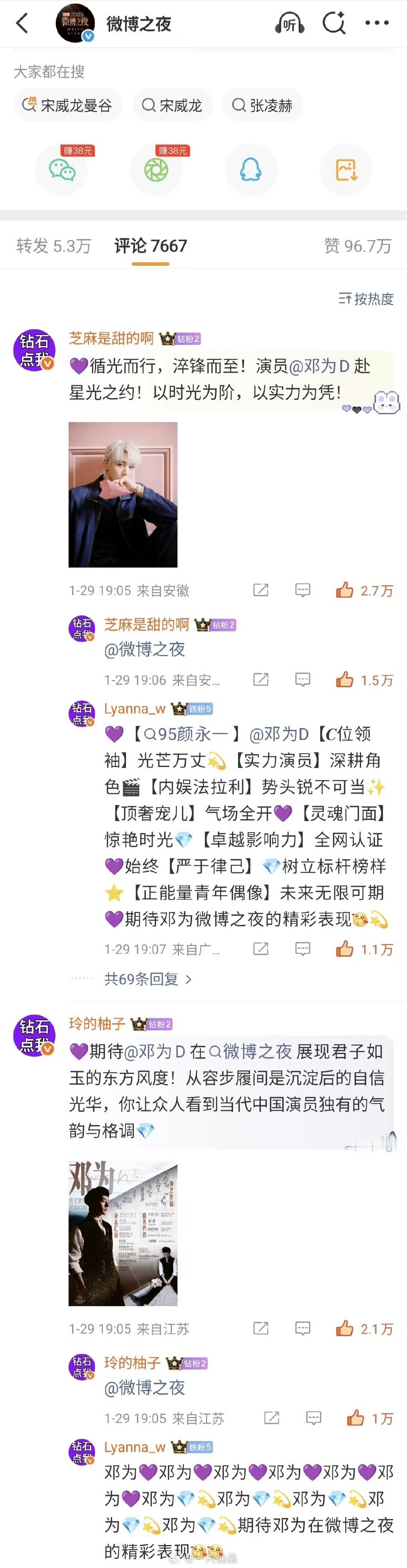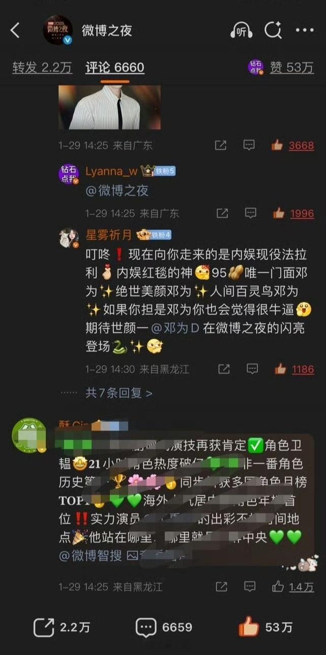 微博之夜kp,邓为粉丝全胜,前十占前六热血钻石手搓治氵简直不要太爽,钻石给力