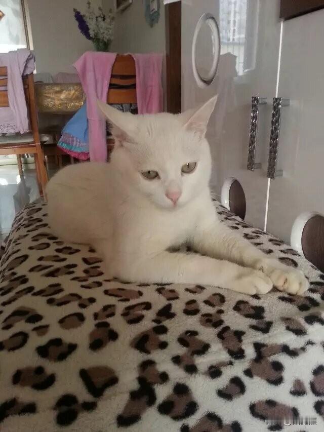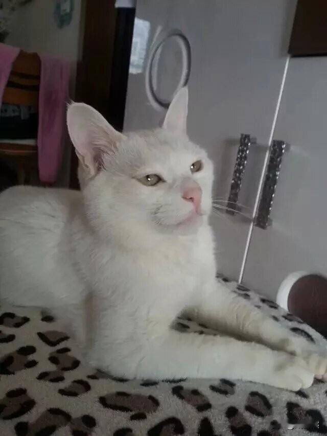 分享一张你家小猫咪的照片这是我养的白色猫咪,它的名字叫“小白”,非常可爱,就是性格冷淡,它不喜欢让人摸它,每天也不黏人,就是喜欢独往独来,是一只非常娇傲的小帅哥。一个小玩具都能玩上一天,长了一双滴溜圆的大眼睛,非常可爱,这些年在生活中,它给我带来很多的乐趣。