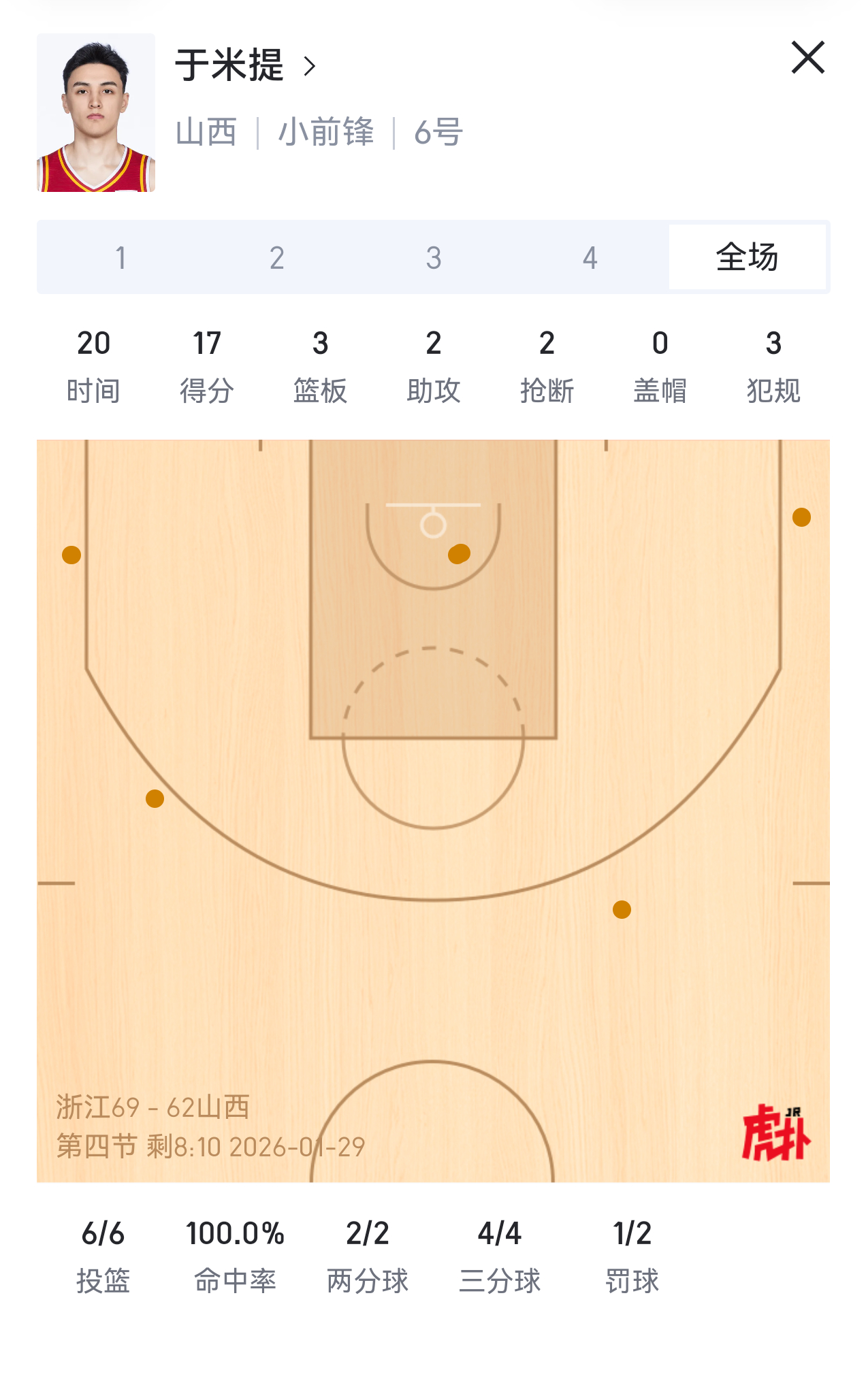 山西队把贾明儒换下去吧,我都看不下去了。浙江队现在是他防谁谁打,而且都还打成了浙