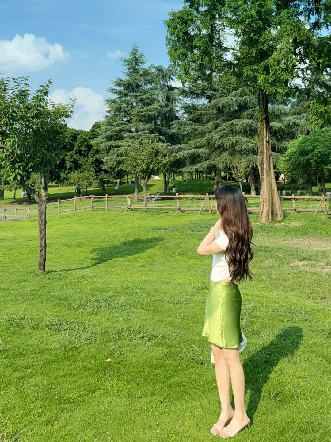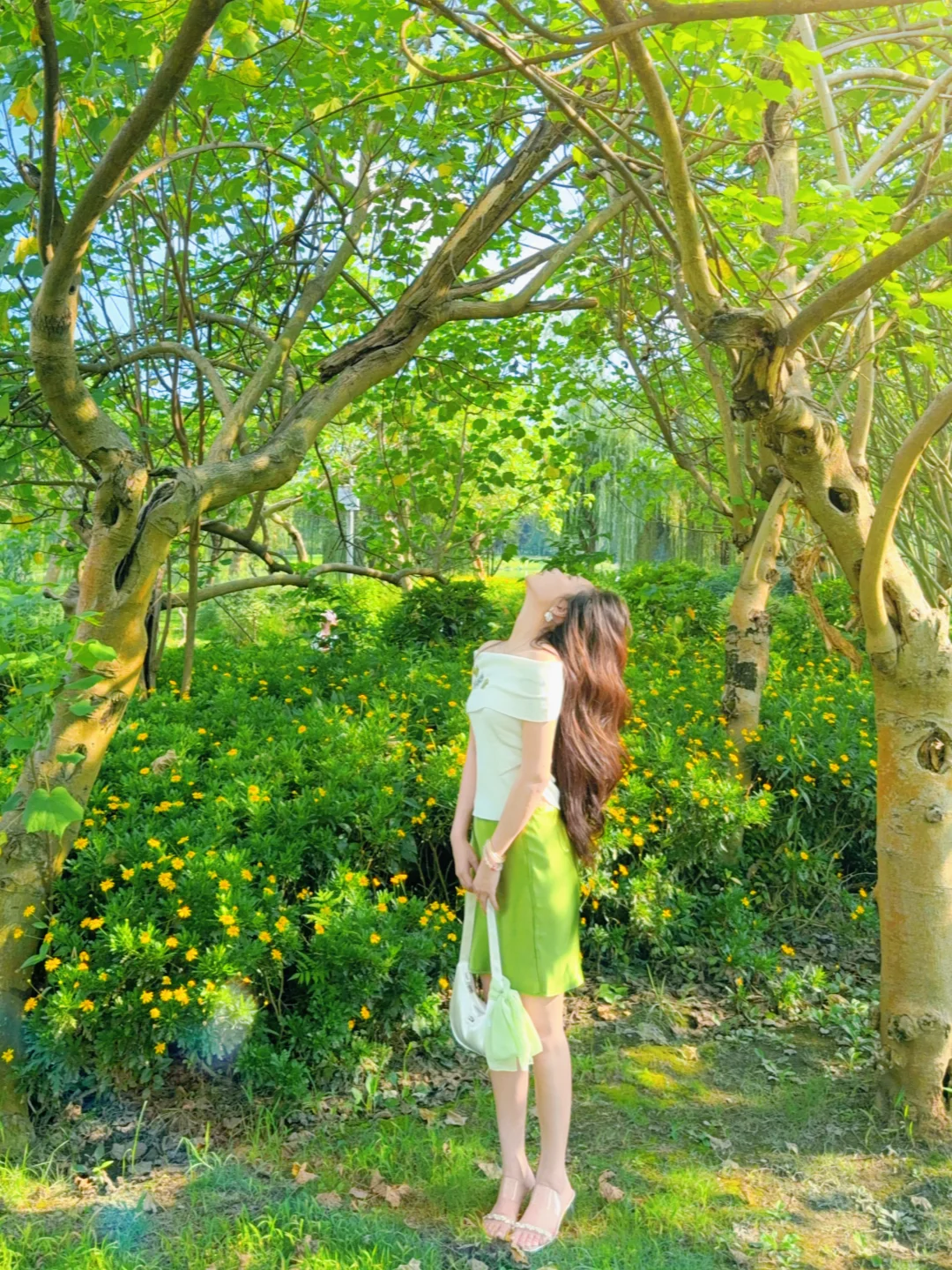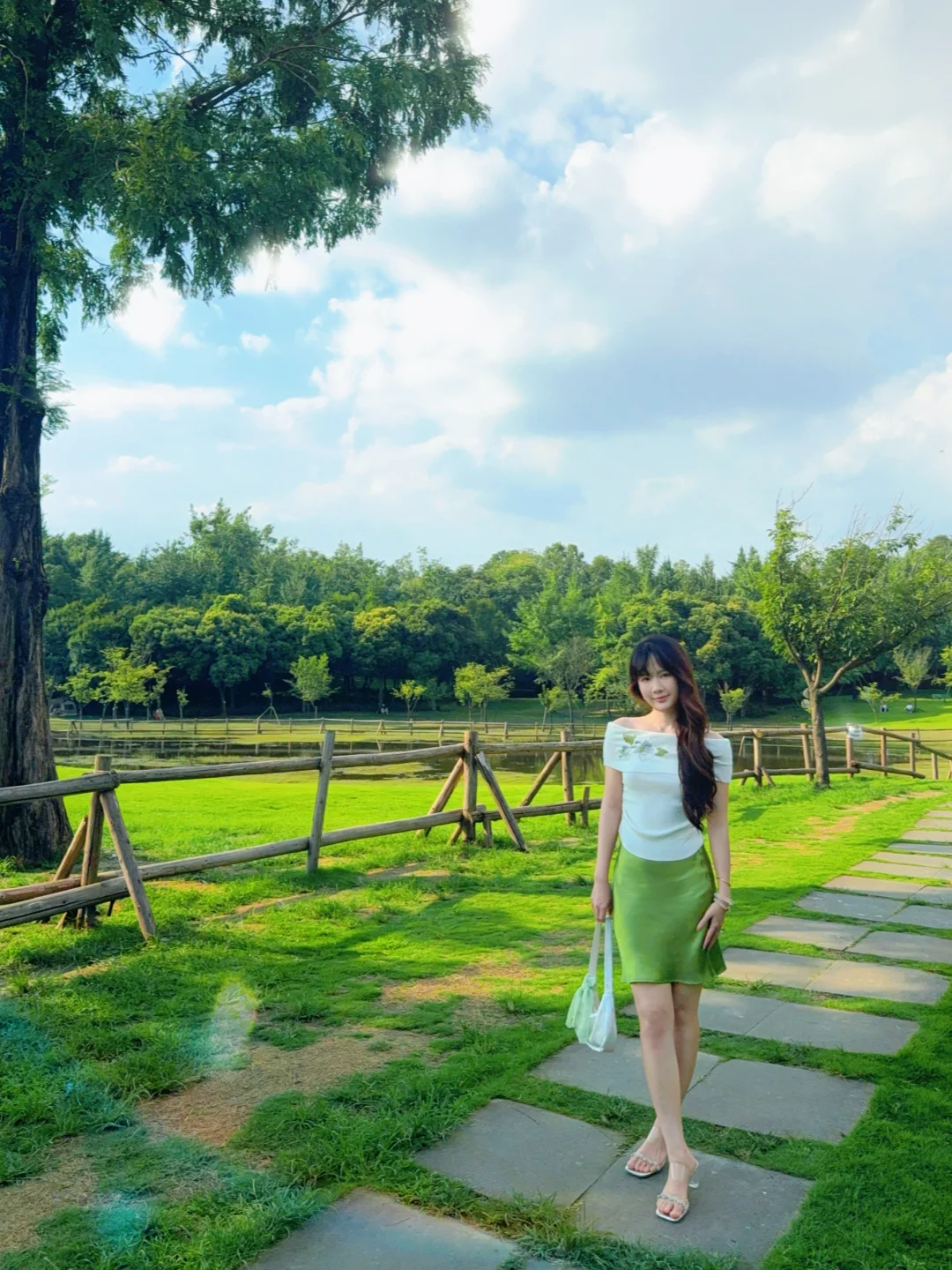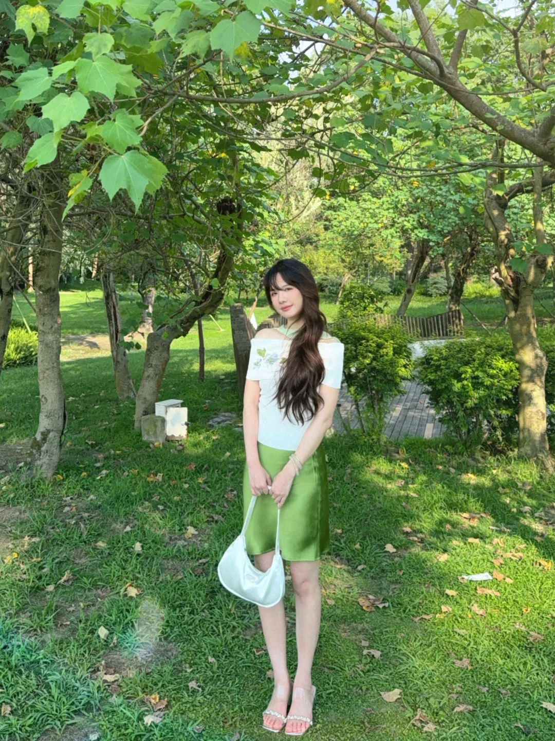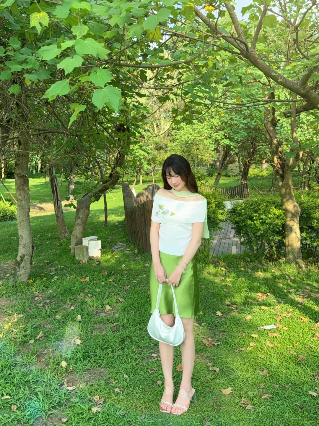 168/107 这套发一下图文🫰🏻 很适合去演唱会的一套!!! 想看绿色应援色穿搭的姐妹可以参考哈 (绿色系穿搭我最近也会拍的 大家不要着急🥹) 上衣也可以换成正肩绿色印花短袖/纯白短袖/亚麻衬衫 或者换成米色黑色系的修身短袖也是可以的 裙子搭配长款的绿色半裙或者白色缎面裙都可以 不想穿高跟鞋的可以换成单鞋或者玛丽珍~ 或者勃肯凉鞋/人字拖也是可以的(不要是运动风的就行) 这个裙子的绿色太漂亮了!!特别正 去演唱会在化个绿色系妆容🥰 满分哈哈哈哈