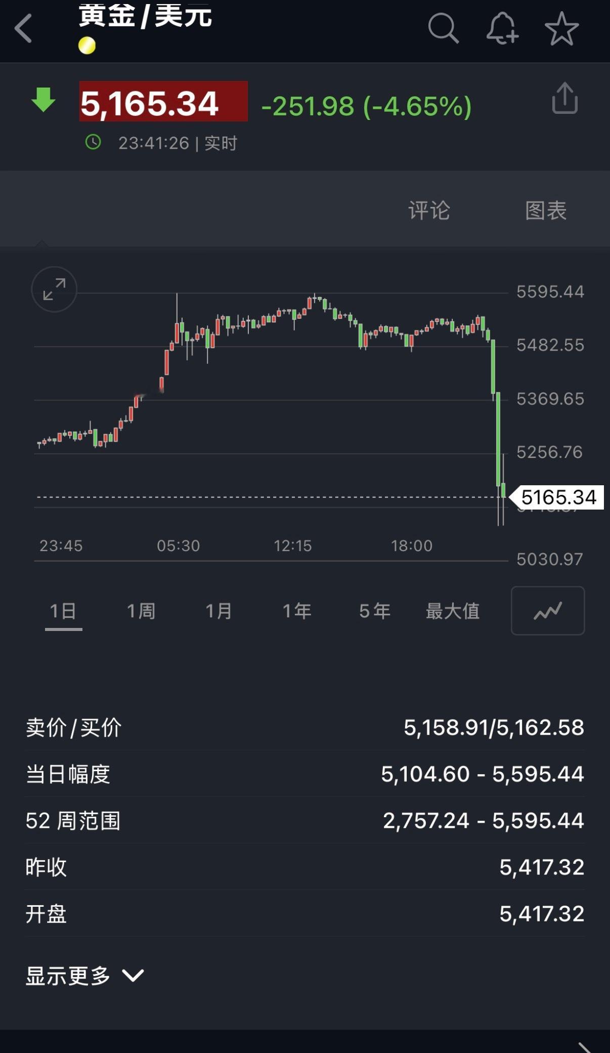 🔻现货黄金跌幅扩大,最新下跌 4%至每盎司 5150.49 美元。🔻仓位过于拥挤了(以上不是投资参考)金价海外新鲜事热点现场