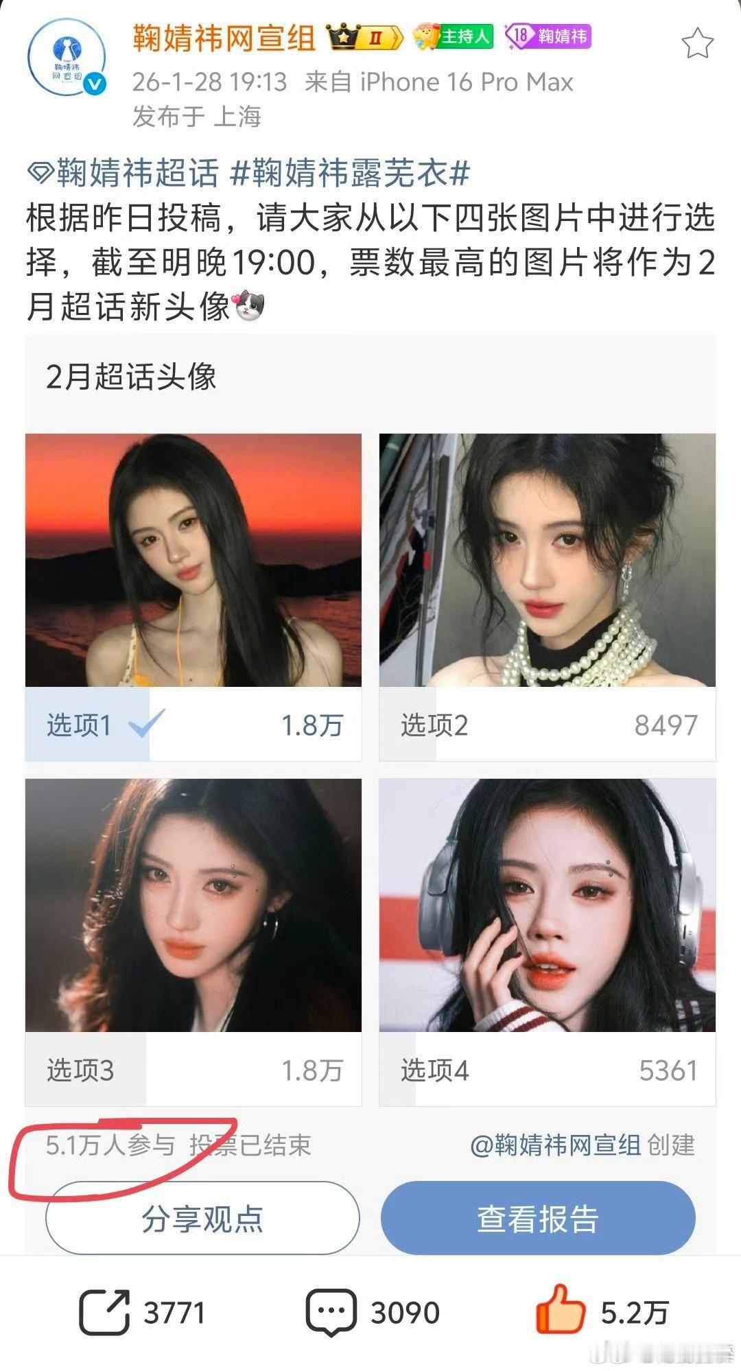 鞠婧祎圈内自嗨投票投了5万人这估计还是用大号点点的,都没切小号,活粉太多了