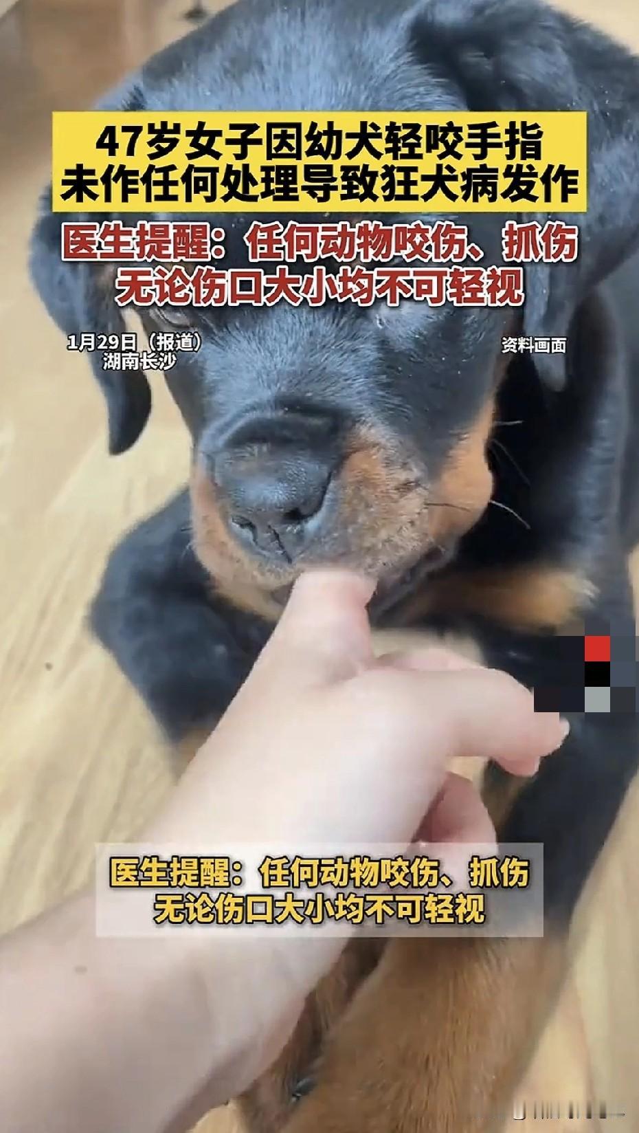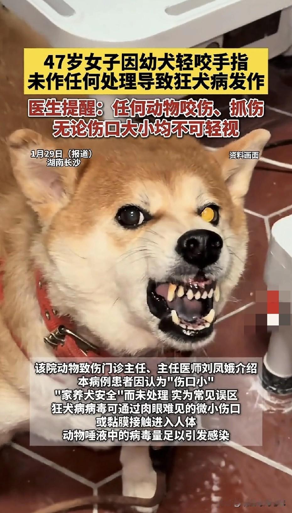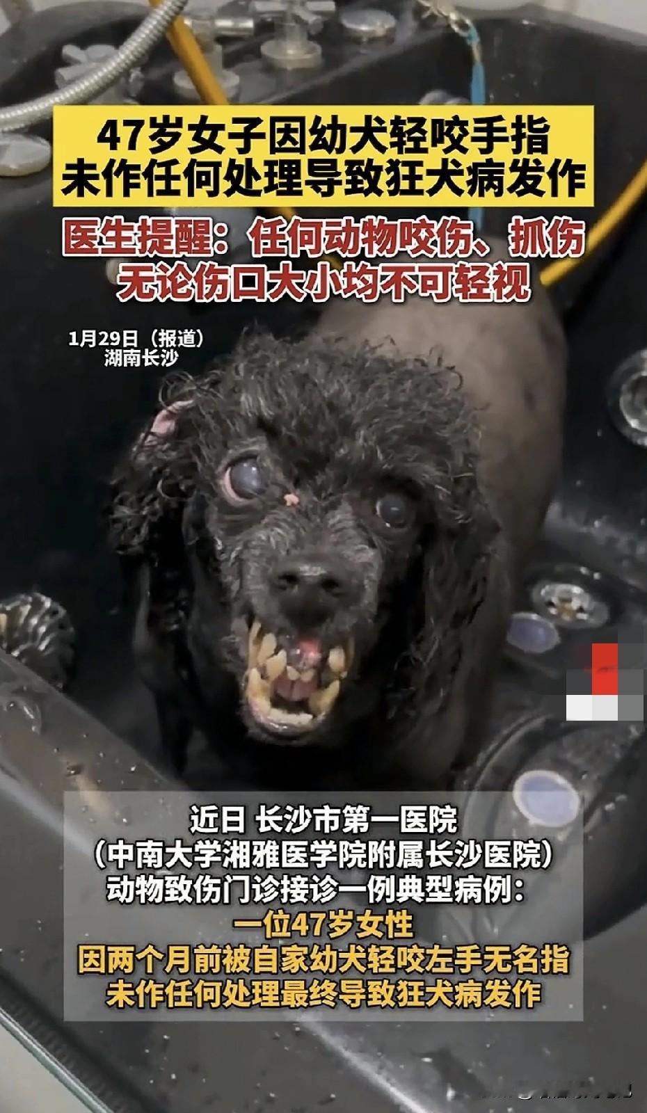 刚刷到这条热搜,我后背直接冒冷汗,不是野狗,不是疯狗,就是每天睡床脚的“毛孩子”。轻咬、破皮、没出血,她嫌麻烦没去打疫苗,结果两个月后高烧恐水,送进ICU已经来不及。医生一句话扎心:狂犬病一旦发病,死亡率几乎100%,神仙都救不回来。 家养狗不一定安全。查了下资料国内99%的人间狂犬病,祸根都是犬,其中一大部分正是“看起来没事”的宠物。病毒潜伏期最长能拖几个月,狗没发病前照样能传染,等你发现狗子流口水、狂躁,其实已经晚了。皮肤黏膜破一点点,病毒就能顺着神经往大脑爬,手指被咬比脸被咬潜伏期更长,更让人掉以轻心。 她本可以活: ❗ 肥皂水+流动水冲15分钟,可冲掉90%病毒; ❗ 24小时内打第一针疫苗+免疫球蛋白,几乎能保命; ❗ 花费不到400元,就能买下一条命,她却选择了“再观察看看”。 狂犬病不是“疯狗专属”,任何哺乳动物都可能带毒;不是“见血才危险”,牙尖划破角质层就算高危。 说到底,狗没罪,人别懒。你省一次疫苗,病毒就省一次“敲门”。 今天,请为家里毛孩子做3件事: ① 翻疫苗本,过期立刻补打; ② 教全家“咬后三步”:冲、消、医院; ③ 把这条微头条转给那个总说“没事”的人。 欢迎来评论区聊聊: 被自家宠物抓咬后,是第一时间去医院,还是抱着侥幸心理?(图源网络)