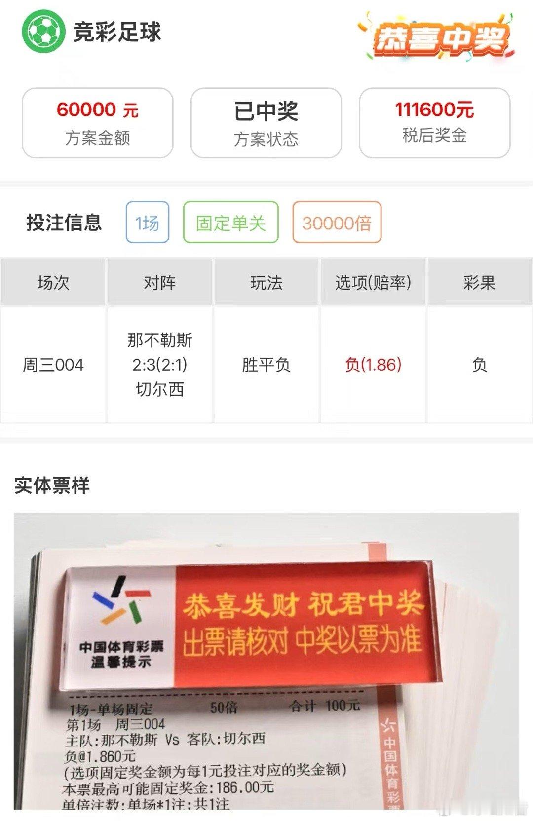 这就是单关的魅力!🔥周三004那不勒斯vs切尔西,看准了直接重注。