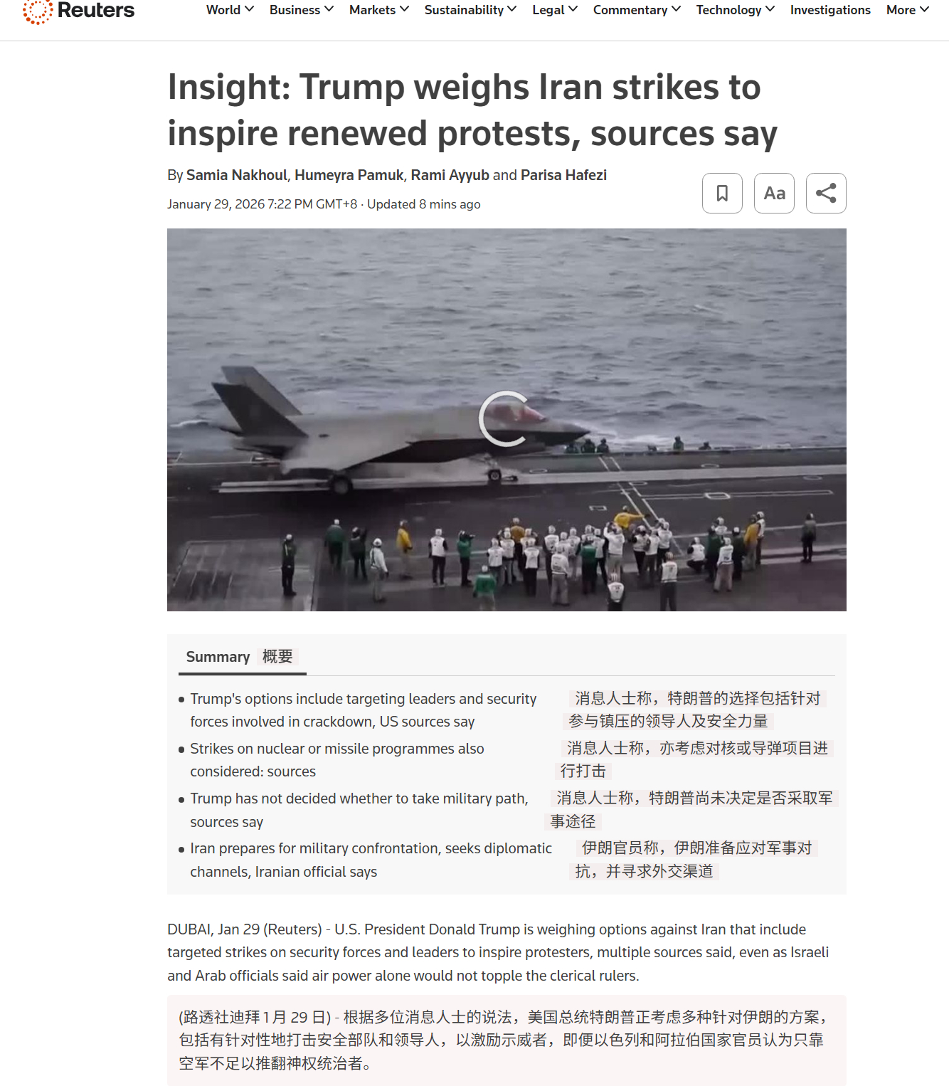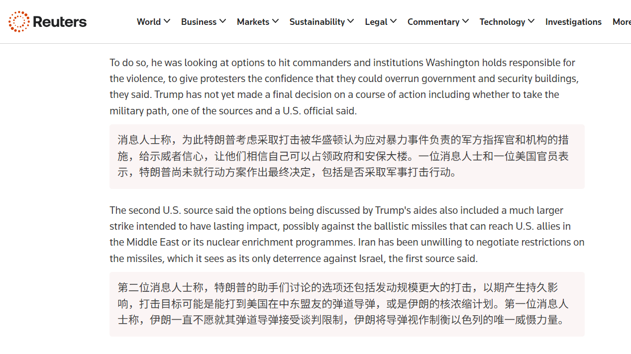 🔻据路透社援引消息人士的话称,特朗普正考虑对伊朗领导层发动精准打击,以激励伊朗抗议者占领伊朗政府机构。🔻又要把伊朗反对派骗出来杀?热点现场海外新鲜事伊朗军队新装备千架战略无人机