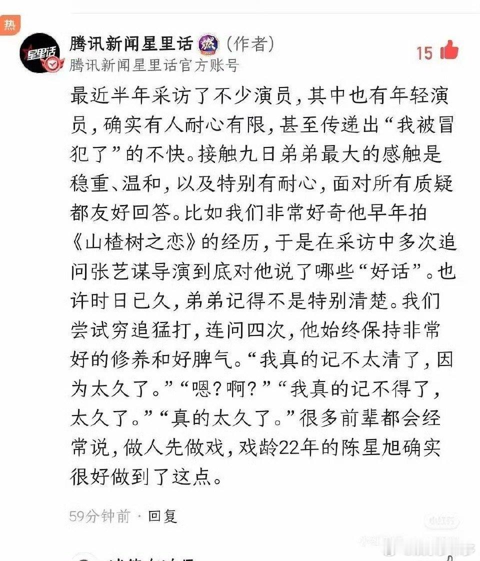 陈星旭业内口碑 值得称赞!无论是古装虐恋还是现代甜宠,他都能轻松驾驭。彬彬有礼的绅士风范,努力奋进的工作态度,圈粉无数业内人。