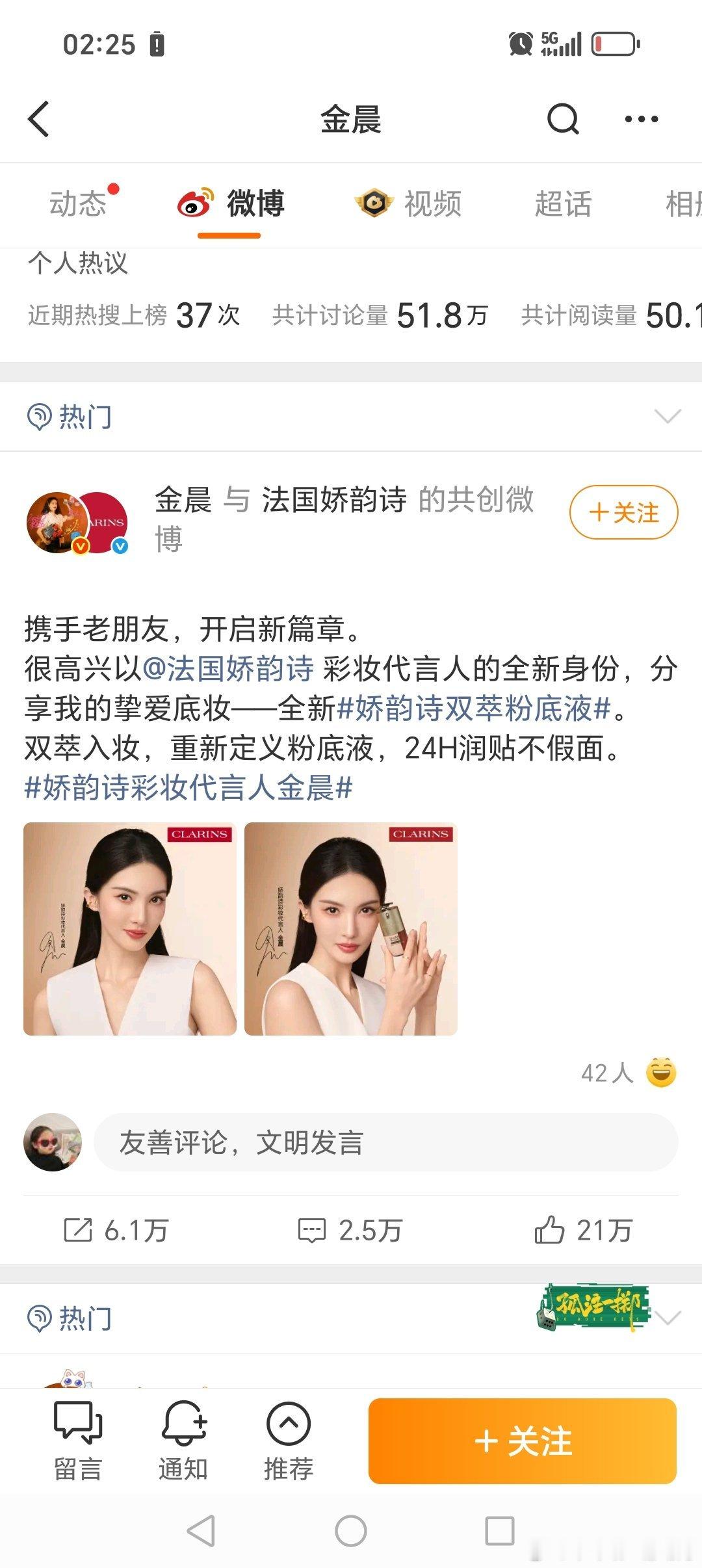 品牌方的消息灵通啊娇韵诗删除了金晨今晚直播的预告,和张雨绮不同的是,张雨绮是后