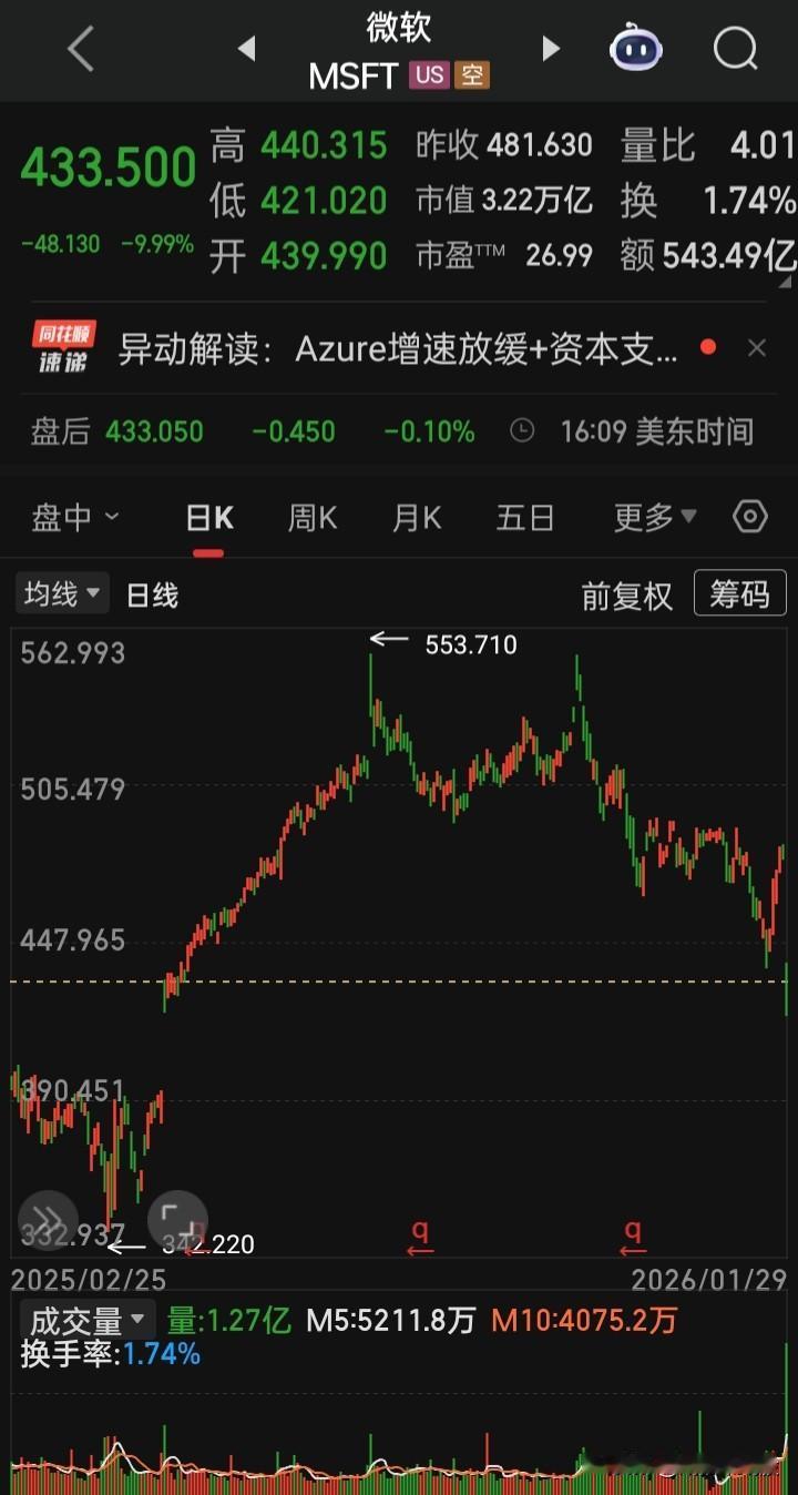 【2026.01.29】国际金银高位跳水大幅震荡,美科技股“微软”暴跌超12%(创出2020年9月以来最大盘中跌幅),“TechCreate”盘中最高涨幅超1450%,“Quince Therapeutics、天睿祥”这俩跌幅超90%,美三大指低开震荡收盘涨跌不一,“邮轮、特斯拉概念、基因编辑、旅游观光、能源设备与服务”等板块概念涨幅在前,“英传达”涨0.52%,“微软”跌9.99%,“特斯拉”跌3.45%,“Meta”涨10.40%,“闪迪”涨2.21%再创历史新高,“美光科技”涨0.12%再创历史新高,“超微电脑”跌3.49%,“希捷科技”涨0.82%再创历史新高,“波音”跌3.13%,“万事达”涨4.13%,“脑再生科技”跌13.61%,“稳定币第一股ICircle”跌7.24%,“AST SpaceMobile”(卫通通信技术)涨0.71%,“Rocket Lab”(太空发射服务)跌3.26%,“纳指金龙中国”涨0.35%,“阿里巴巴”跌0.77%,“36氟”跌7.11%,“尉来”涨4.14%,“海川证券”跌3.50%,“九洲大药房”跌13.66%,三大美指,美元、离岸人民币、黄金、白银、原油涨跌幅表现 【道指】 收49071.56,涨0.11% 【纳指】 收23685.12,跌0.72% 【标普】 收6969.01, 跌0.13% 【美元指数】 目前报96.221,跌0.23% 【离岸人民币】目前报6.9482,涨0.07% 【纽约金主连】目前报5428.4,涨1.65%(盘中大跳水) 【纽约银主连】目前报116.93,涨2.99%(盘中大跳水) 【美原油主连】目前报65.57, 涨3.73%