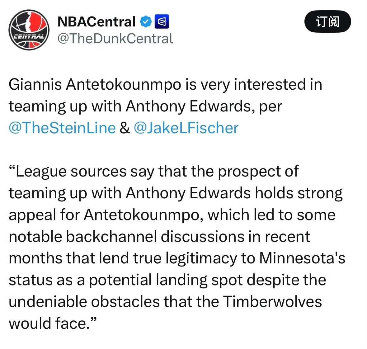 字母哥消息:勇士准备4首轮梭哈,字母哥对华子、76人感兴趣! 库里+字母哥就像利拉德的复制品我不看好,交易追梦(巴特勒)、库明加(希尔德)得出吧,谁给库里掩护呢?库里巅峰还有几年?2年、3年? 字母哥选择华子、马克西就是想搭档突破、大心脏型球员,跟他更搭! 再说还有热火、尼克斯等竞争对手,勇士想得到难道极大!