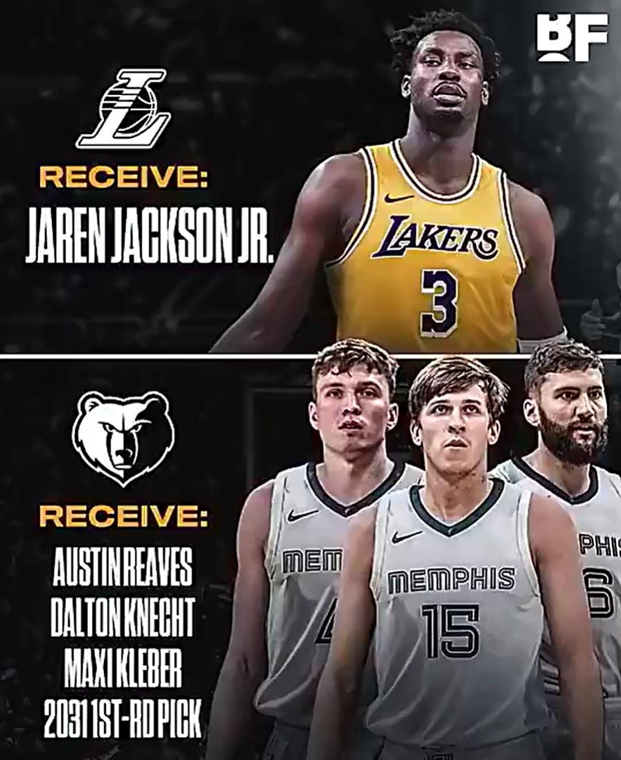 疯了吧?美媒模拟交易: 湖人筹码:里夫斯、克内克特、克莱贝尔、2031年首轮 灰熊筹码:小贾伦杰克逊 这笔交易的主体,就是此前里奇保罗在节目里谈的里夫斯和JJJ,逻辑上来说,东契奇和JJJ的搭档也是能适配的,但问题是,里夫斯是湖人的香饽饽。 至少在目前看来,湖人有自己异想天开的一面,他们要出里夫斯,必然是瞄准字母哥这样的球员,JJJ的分量还不太够。否则就留着里夫斯和东契奇搭档,詹姆斯退役之后,两个核心持球点也能分配好球权,这是湖人管理层最美好的想象。 因此从湖人的角度出发,不考虑薪资配平的问题,就是里夫斯单换JJJ,湖人这帮领导也未必愿意。