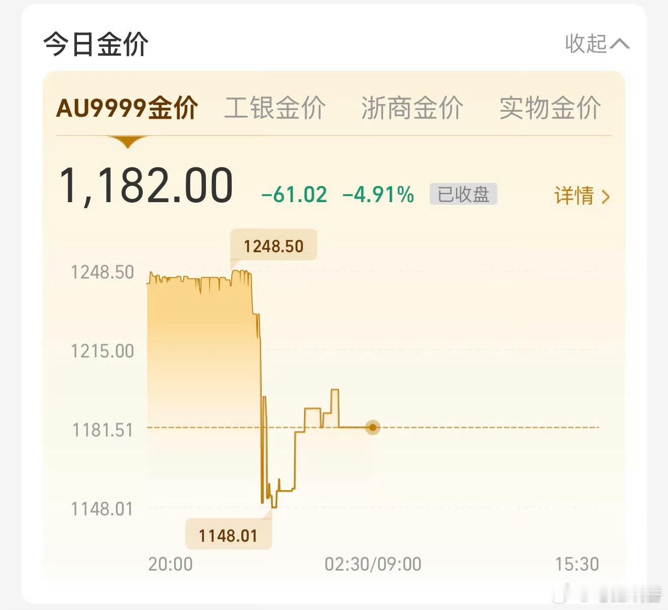 咋一觉醒来金价暴跌了?有啥情况吗?先是断崖式下跌,然后又技术性回调有昨天刚刚买入