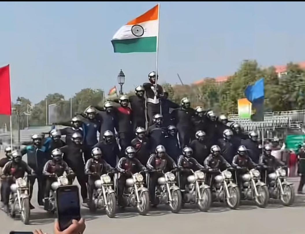印度“共和国日阅兵”都有哪些仪式项目? 印度“共和国日阅兵”有不少独特仪式项目。每年1月26日,新德里会举行盛大阅兵。 摩托车特技是标志性项目,其起源于英国殖民时期,1950年成为固定环节。像2026年,队员不仅有“叠罗汉”,还玩出顶地球仪360度旋转、单杆倒立等高难度动作。队员需至少两年封闭训练,才能时速行进中完成表演。 动物方队也是特色,2026年陆军首次派出完整“动物方队”,有双峰骆驼、赞斯卡尔矮种马、猛禽和本土军犬等。此外还有武器装备展示和花车巡游,融合了军事与文化特色。
