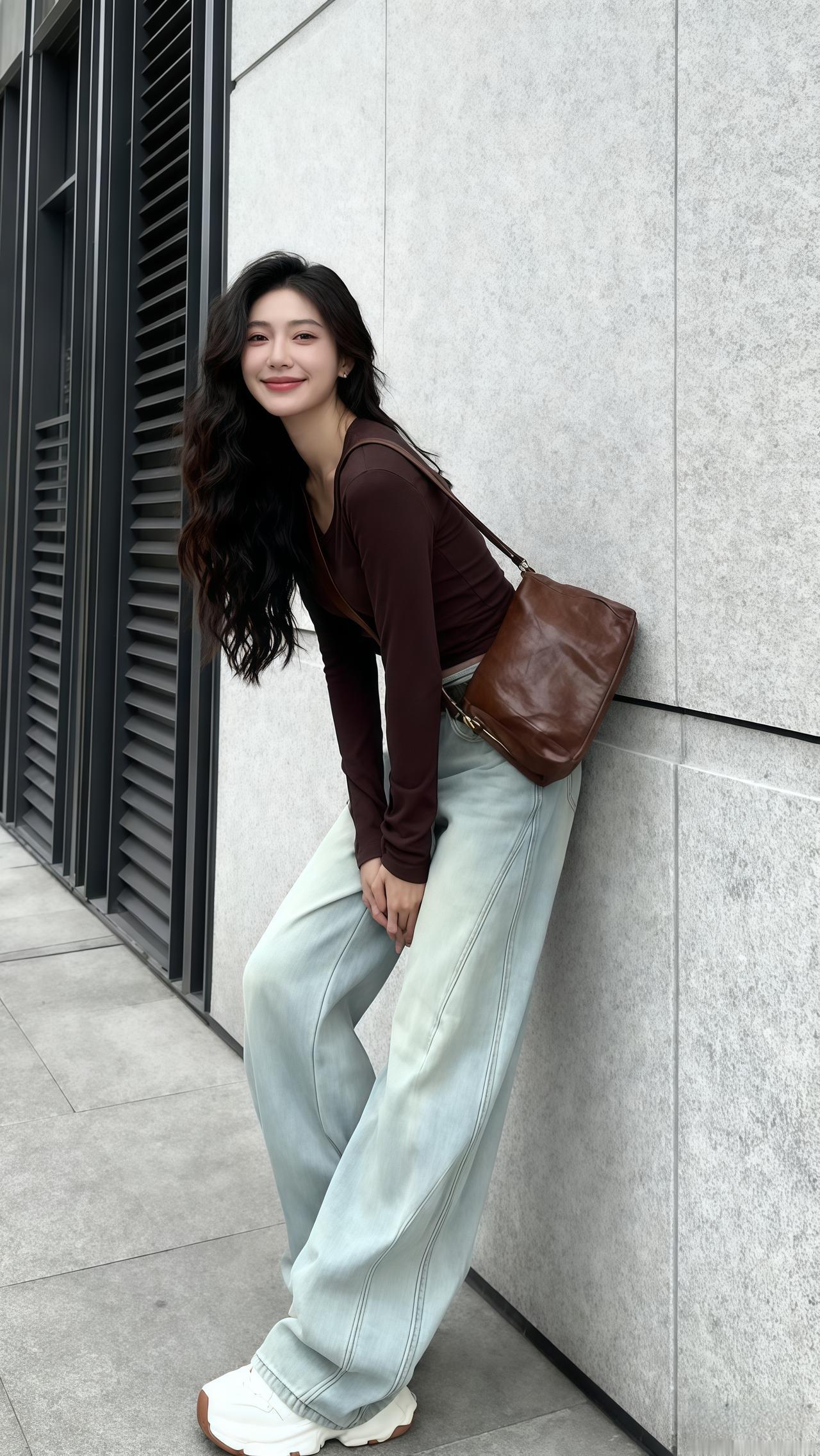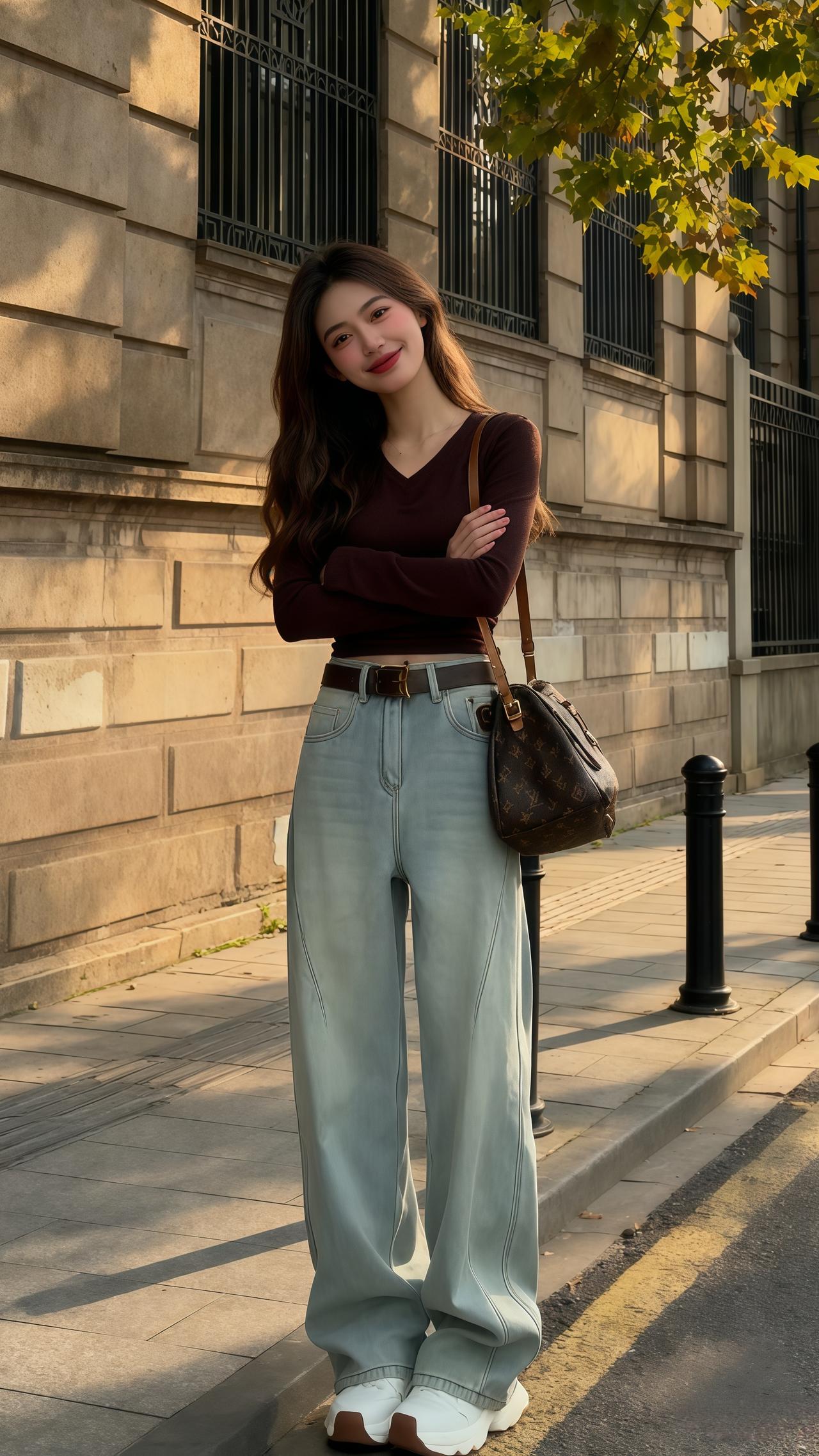 这套穿搭是温柔利落的黑蓝秋日风,把松弛质感与精致细节融合。黑色开衫自带温柔松弛感