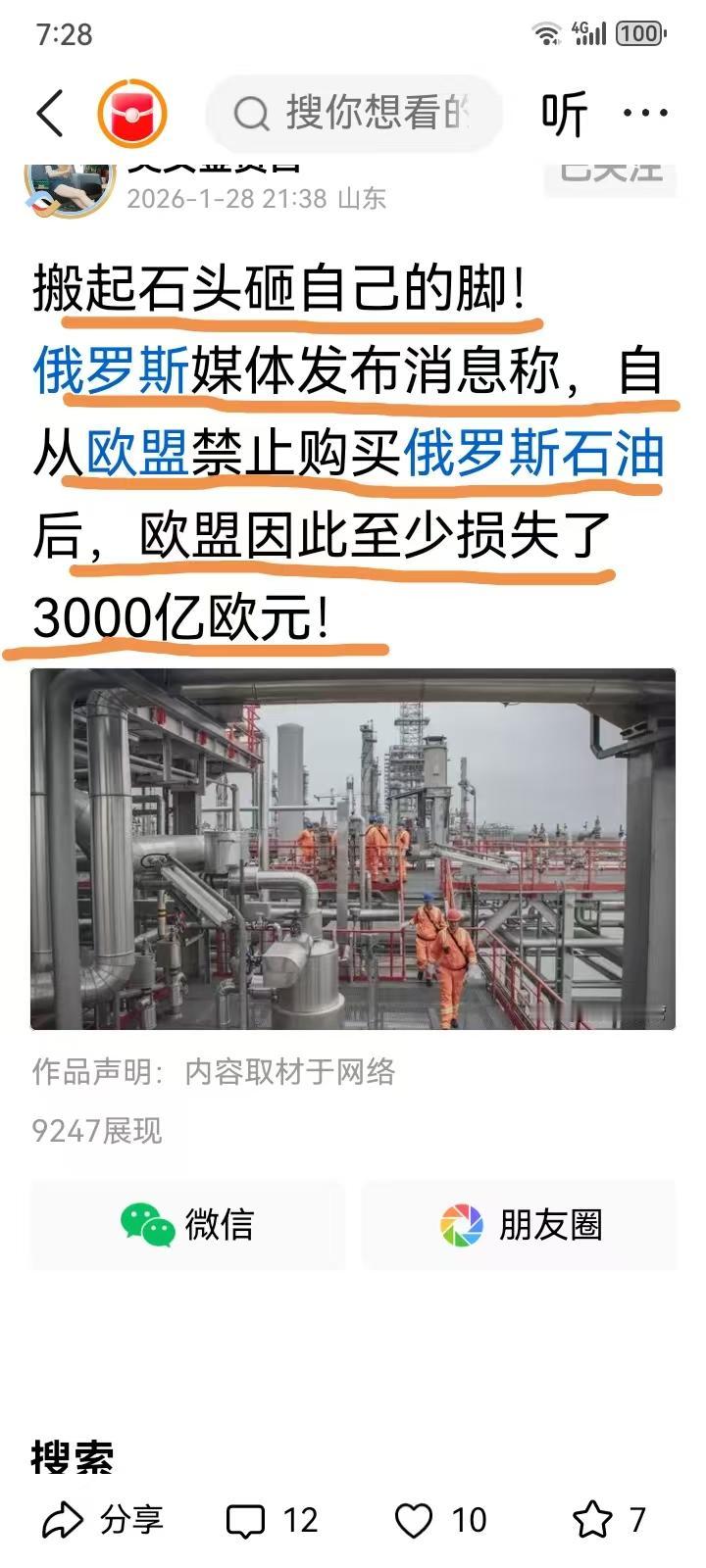 俄罗斯媒体发布消息称,自从欧盟禁止购买俄罗斯石油后,欧盟因此至少损失了3000亿欧元! 点评二句:这样耗下去欧盟国家迟早经济崩溃,个人认为俄罗斯唯一要做的事,不要告诉欧盟,欧盟目前把俄罗斯当敌仇,俄乌战争以来,一如既往支持乌克兰。应该让他越陷越深,不费一枪一弹就可让它自然垮掉。更不要提醒他们,万一他醒悟了怎么办?以防把他救活了。应该说他做的对,做的好,让他搬石头砸自己脚去!