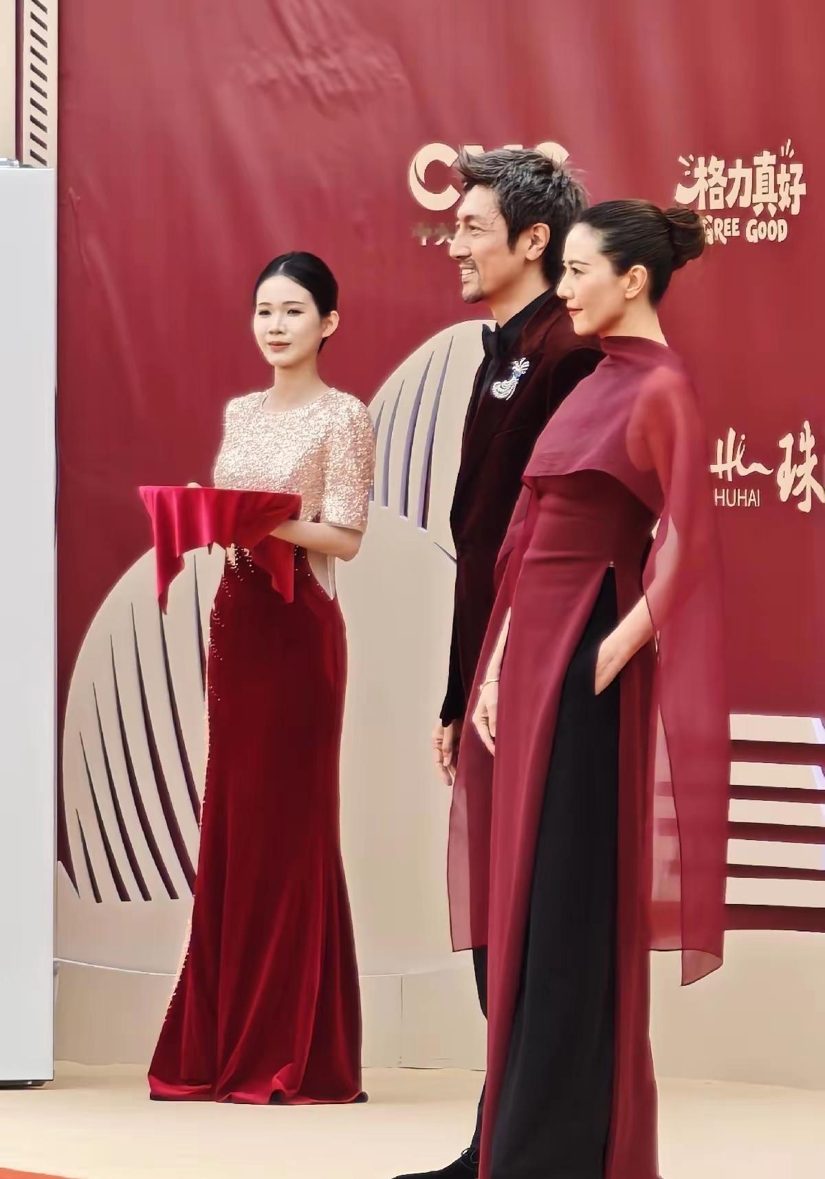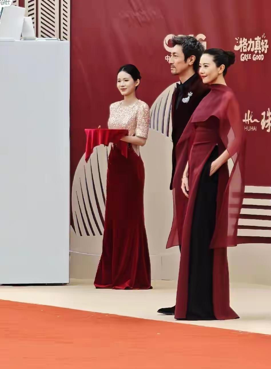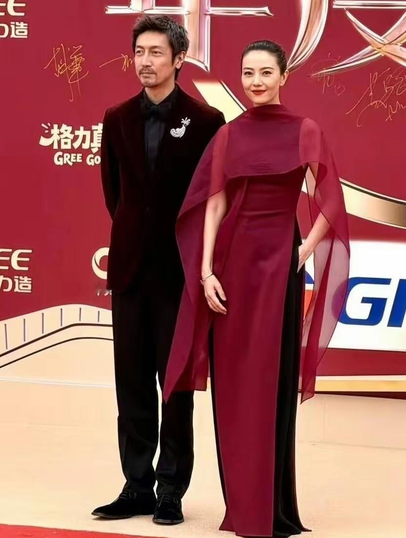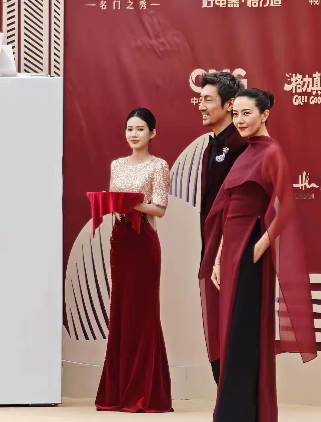 高圆圆与张鲁一惊艳亮相电视剧年度盛典活动!镜头下,她一袭穿酒色红裙搭配黑色裤子,
