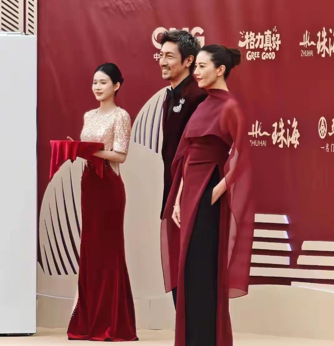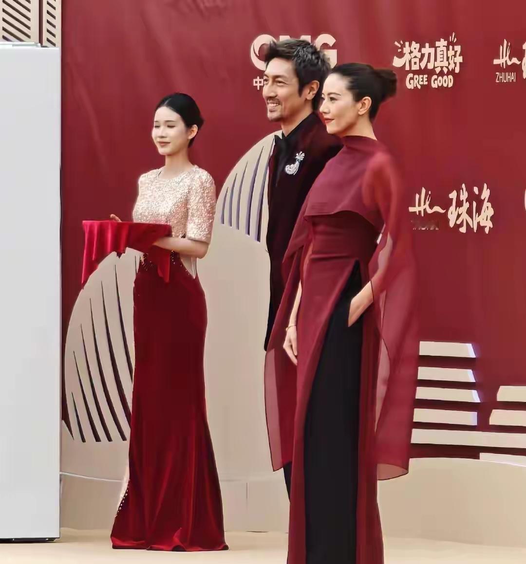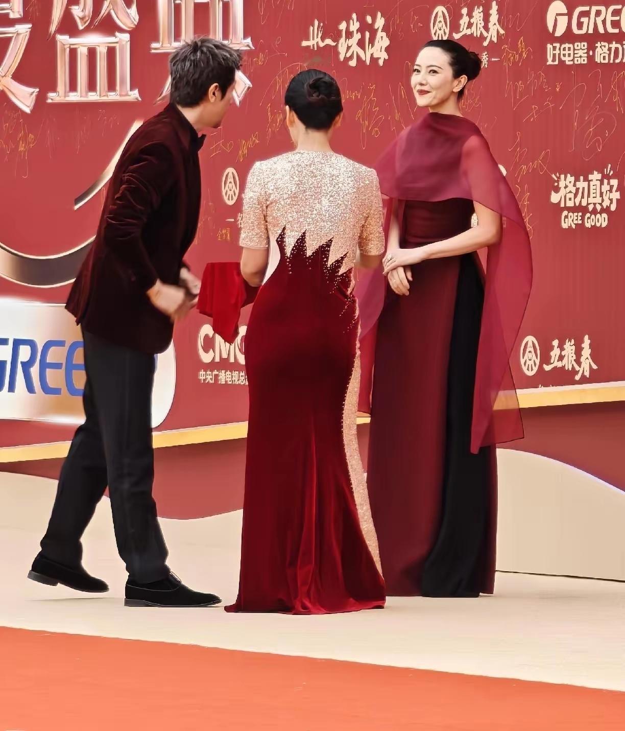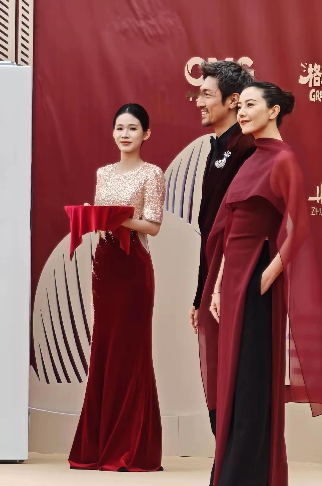 高圆圆与张鲁一惊艳亮相电视剧年度盛典活动!镜头下,她一袭穿酒色红裙搭配黑色裤子,
