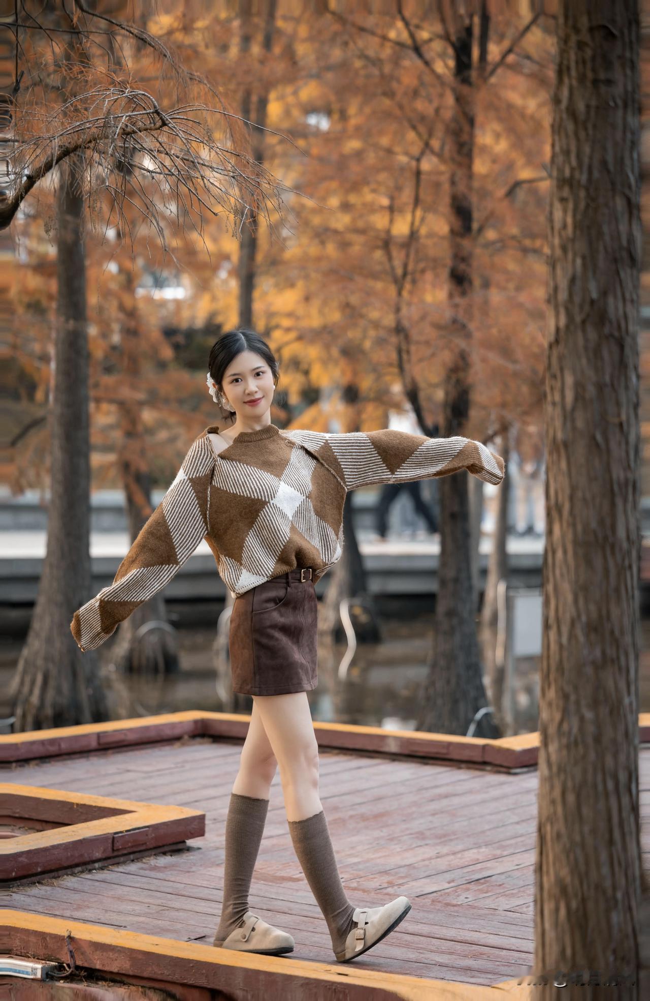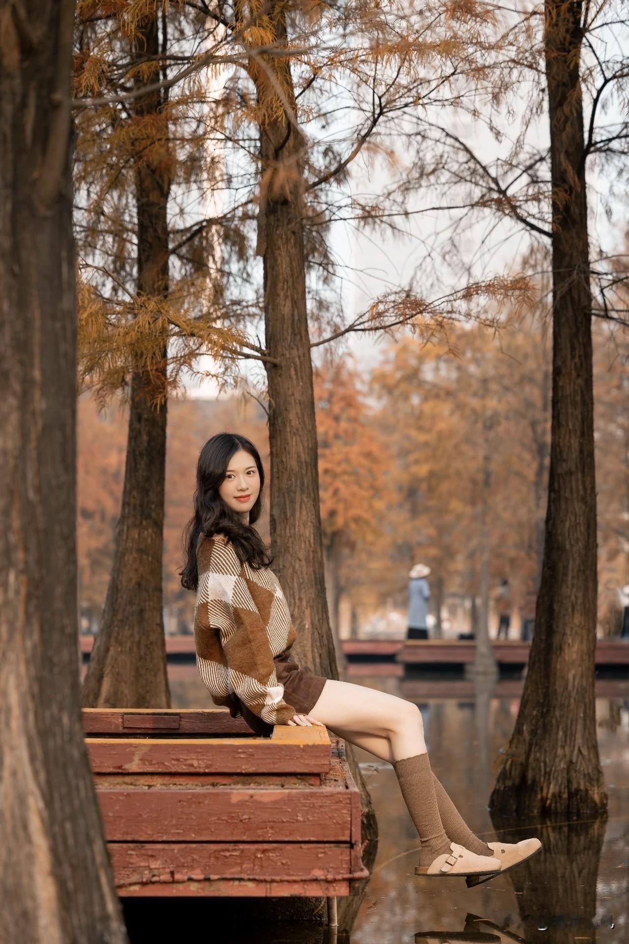 赶紧抓住落羽杉变红的小尾巴!上周去公园拍到一组绝了,发出来好多人问怎么拍的。其实吧,这种场景根本不用硬摆,越随意越出片。 我最喜欢的一个姿势是——侧身站在那条延伸的小路上,手轻轻背在身后,转头不看镜头,就望着林子深处发呆。朋友抓拍的那瞬间,风刚好吹起头发,红杉作背景,整个人就莫名有种故事感。 其他几个动作也简单:坐着托腮笑、边走边回头、或者干脆背对镜头…总之记住别死死盯着相机,身体放松点,让朋友多抓拍几张动态的,总能挑到又自然又有氛围的。 落羽杉的季节感实在太强了,随便拍拍都像电影截图。抓紧时间去试试吧~ 落羽杉