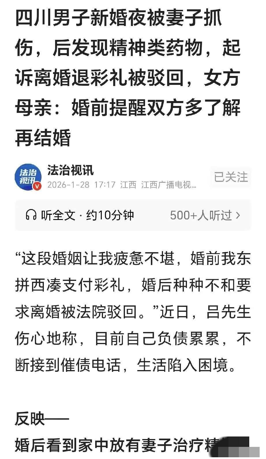笑不活了,一男子在新婚夜,想和妻子过夫妻生活,却被妻子抓了个大花脸,吕先生心想这妻子还真是没开苞的黄花闺女啥都不懂? 吕先生是个大龄剩男,38岁这年同村人给他介绍了一个姑娘。他饥不择食地就答应了。 后面凑了11万彩礼,就把姑娘娶回了家,可没想到结婚了这姑娘都不让过夫妻生活,吕先生刚想靠近妻子,就被抓脸。吕先生也是被弄得苦不堪言。 终于有一天吕先生发现妻子在服用治疗JS病的药。他终于知道妻子不让他碰的原因了。