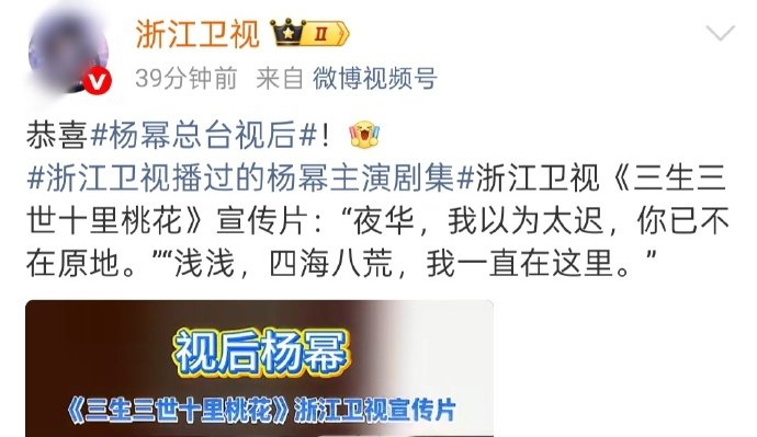 浙江卫视发文祝贺杨幂拿下总台视后浙江卫视恭喜杨幂总台视后 浙江卫视恭喜杨幂总台视后,谁懂连发三条的含金量呢,我们幂姐的含金量还在上升,期待住和你的角色多多见面啦!杨幂总台视后