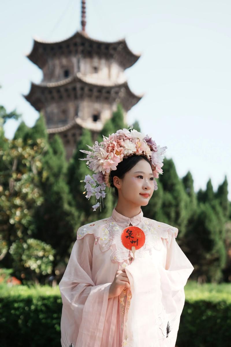 当你头一次来到泉州,不论是在繁华的街上,还是在公园里,都见到一群身着似汉服饰,头戴五颜六色鲜花头饰,年轻漂亮的女子,格外吸引人们的眼球。优美的景观,与身着漂亮的服饰的美女,交织融入在一起,呈现出一幅美丽的风景。 簪花女,泉州一道特别有靓丽的风景线。出自泉州丰泽区东南部江海交汇处的小渔村。女人一半常年穿着美丽的服饰和头饰,引人注目而闻名中外。 2008年,列入国家级非遗泉州女簪花发源地,众多来泉州的女游客,都喜欢穿戴上女簪花拍靓照留念。