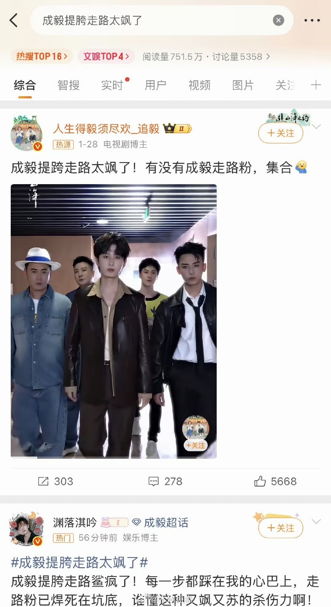 成毅提胯走路太飒了?他跟飒有关系吗?我很难联想到一起。用“娇俏”更准确吧?旁边至少两个长得比他帅气质比他好,另外两个不分伯仲,怎会如此