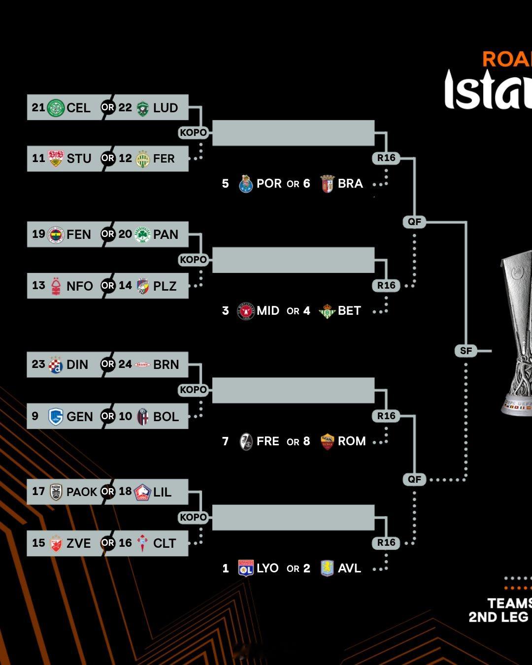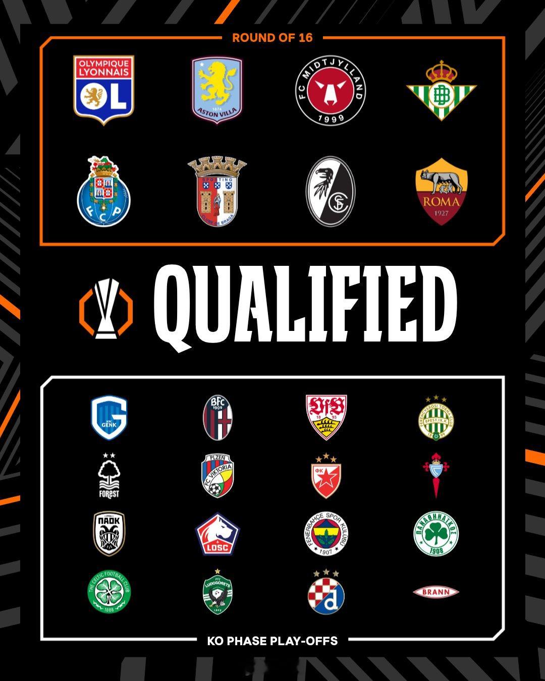 欧联直通淘汰赛8队出炉 | 欧联联赛阶段收官2025/26赛季欧联联赛阶段收官,直通淘汰赛8队:里昂、阿斯顿维拉、中日德兰、皇家贝蒂斯、波尔图、布拉加、弗赖堡、罗马附加赛区:种子队:亨克、博洛尼亚、斯图加特、费伦茨瓦罗斯、诺丁汉森林、比尔森胜利、贝尔格莱德红星、塞尔塔非种子队:塞萨洛尼基、里尔、费内巴切、帕纳辛纳科斯、凯尔特人、卢多戈雷茨、萨勒格布迪纳摩、布兰—— 附加赛这对阵,有点拼! 新年第一个好运