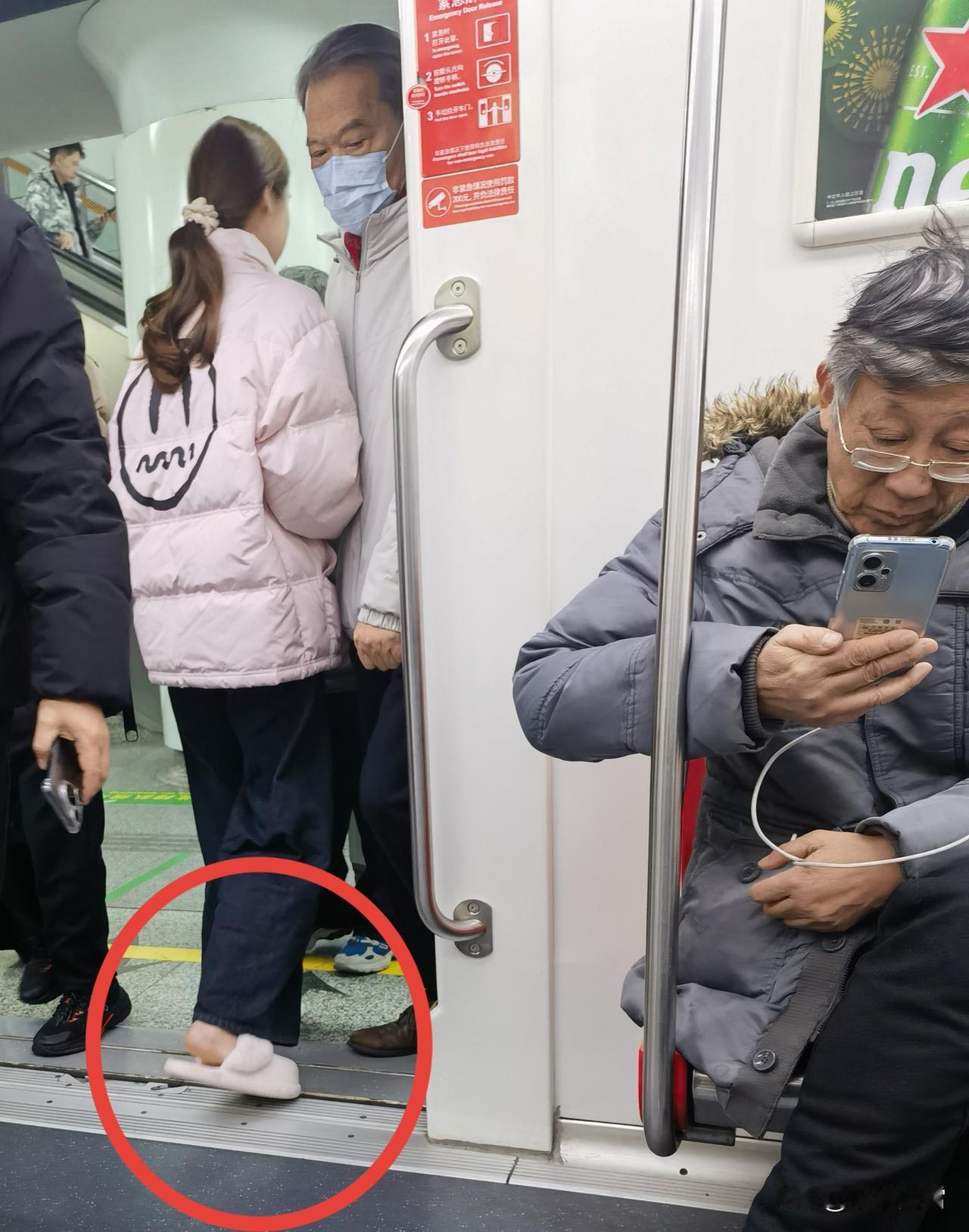 坐地铁发现一个女孩,大冬天的光着脚丫子,不穿袜子,只穿没后跟的拖鞋,就出门了。