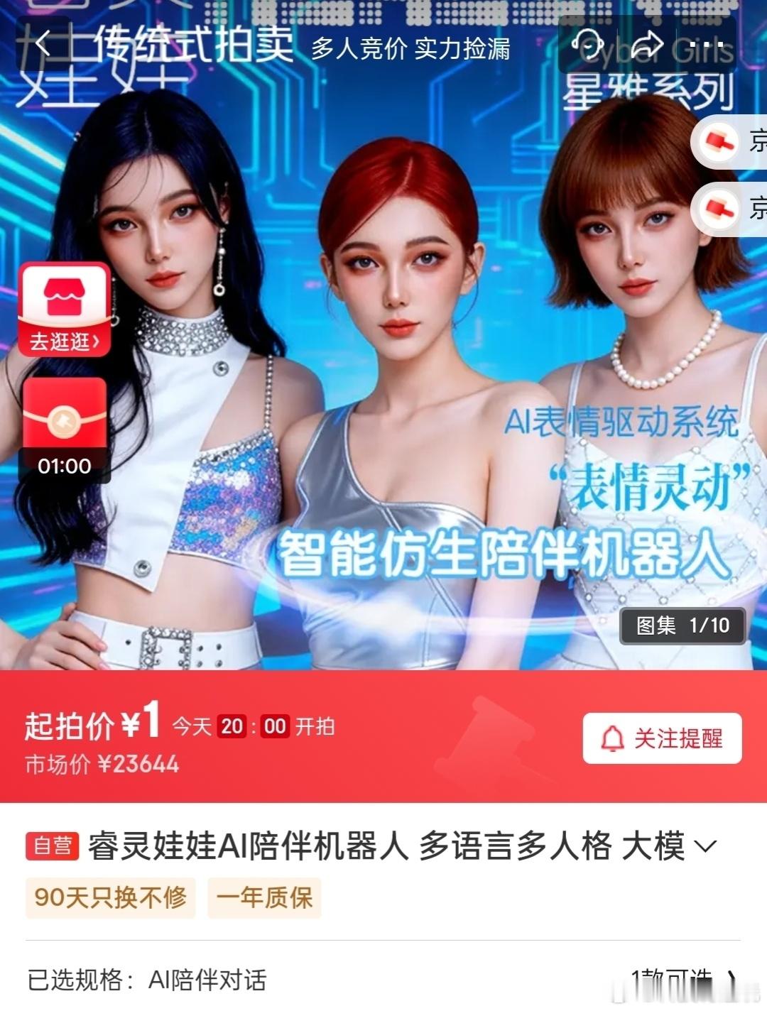 1元拍卖女团机器人京东属实是太会玩了!一直觉得机器人是偏向实用的科技产物,要么帮着处理琐事,要么做工业辅助,万万没想到现在科技已经卷到推出女团机器人,还搞起了1元拍卖,这脑洞和创新速度真的远超想象,完全跟不上科技迭代的节奏。被狠狠勾起兴趣的我,已经准备去京东上看看还有啥好物在拍卖了,有没有一起去凑个热闹的,举手