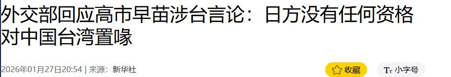 日本高官声称:中方若不认旧约,台湾将归日本!中国外交部迅速回击,指该和约非法无效!这场交锋,牵出二战后一段争议历史,日本拿旧金山和约碰瓷台湾,外交部直接对其进行定性。 2025 年下半年,日本首相高市早苗在国会相关会议中,多次围绕台湾问题发表不当言论,核心逻辑均围绕所谓《旧金山和约》展开,先是声称日本依据该和约放弃对台湾的相关权利,进而模糊台湾的法律地位。 后续更有日方官员进一步歪曲解读,将该和约与台湾归属强行绑定,抛出中方不认该和约则台湾归日本的荒谬论调,这类言论完全无视历史事实与国际法准则,是对中国主权的公然挑衅,也暴露了日方部分势力妄图突破战后国际秩序、干涉中国内政的险恶用心。 要厘清这一事件的本质,首先需要明确《旧金山和约》的真实背景,该和约签署于 1951 年,由美国单方面主导,联合部分国家与日本达成,其签署过程存在严重的程序缺陷,作为二战中抗击日本法西斯的主要战胜国,中国自始至终被排斥在谈判与签署流程之外,苏联等关键国家也未参与或认可。 这份和约从根源上就违背了多国共同协商、处理战后问题的基本原则,同时它还违反了此前签署的《联合国家宣言》中不得与敌国单独媾和的规定,缺乏最基本的国际法正当性,中国政府从该和约签署之初,就多次发表声明,明确其非法无效的本质,绝不承认其对中国领土主权相关问题的任何处置。 历史上日本对台湾的侵占,本身就是建立在侵略与不平等条约之上的非法行为,1895 年日本通过甲午战争的胜利,逼迫清政府签订不平等条约,强行攫取台湾及澎湖列岛,开启了对台湾长达半个世纪的殖民统治,这段历史是中国人民心中难以磨灭的伤痛,也是国际社会公认的侵略史实,而二战的胜利,从根本上推翻了日本的侵略成果。 1943 年《开罗宣言》明确规定,日本所窃取于中国之领土,例如东北四省、台湾、澎湖群岛等,归还中华民国,1945 年《波茨坦公告》进一步重申,《开罗宣言》之条件必将实施,日本最终签署投降书,正式接受《波茨坦公告》的全部条款。 这一系列具有最高法律效力的国际文件,形成了完整的法理链条,彻底确定了台湾作为中国领土不可分割一部分的法律地位,这一事实得到国际社会的广泛认可,也成为战后亚太地区国际秩序的重要基石。 日方刻意避开《开罗宣言》《波茨坦公告》这些具有绝对权威的国际文件,反而抓住一份非法的《旧金山和约》大做文章,其目的显而易见,就是想通过歪曲历史、混淆法理,制造 “台湾地位未定” 的虚假议题,为其干涉台湾问题、配合外部势力操弄地区局势寻找借口。 更有甚者抛出台湾归属的荒谬言论,本质上是对二战胜利成果的公然否定,也是对中日两国达成的四个政治文件精神的严重背离,1972 年《中日联合声明》中,日本政府明确表示坚持遵循《波茨坦公告》第八条的立场,承认中华人民共和国政府是中国的唯一合法政府,充分理解和尊重中国关于台湾是中华人民共和国领土不可分割的一部分的立场,日方如今的言论,完全背弃了自身作出的郑重承诺,破坏了中日关系的政治基础。 中国外交部的回击,并非简单的外交表态,而是基于历史事实与国际法理的坚定发声,外交部发言人多次阐明立场,指出日方没有任何资格对中国台湾问题置喙,强调《旧金山和约》的非法性与无效性。 同时重申台湾自古以来就是中国领土的一部分,世界上只有一个中国,中华人民共和国政府是代表全中国的唯一合法政府,台湾问题是中国的内政,任何外部势力都无权干涉,这一回应既明确了中国的核心立场,也戳破了日方的舆论谎言,维护了战后国际秩序的严肃性。 这场外交交锋的本质,是日方部分势力逆历史潮流而动,妄图操弄台湾问题谋取私利的行径,与中国维护国家主权和领土完整、捍卫二战胜利成果的坚定决心之间的对抗,历史与法理早已给出明确答案,任何企图分裂自己国家的人都将受到人民的唾弃和历史的审判,任何试图以非法文件干涉中国内政、染指中国领土的行为,都必然会遭到坚决反对,也不可能得逞。 日方应立即停止发表错误言论,正视历史事实,恪守中日四个政治文件的规定,切实尊重中国的主权和领土完整,以实际行动维护中日关系的健康发展,广大网友对此有何看法,欢迎在评论区留言交流。