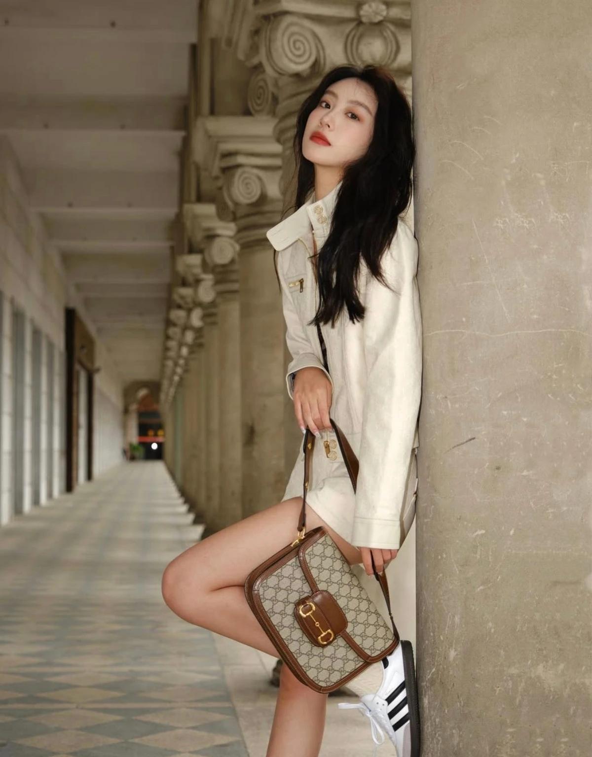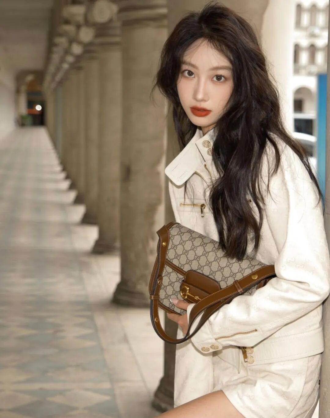 优雅白裙少女,漫步在古典长廊,尽显时尚与气质。