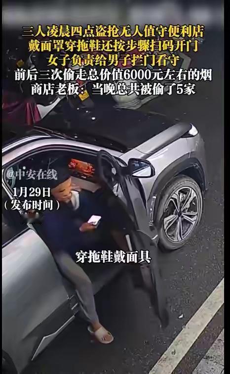 这些人是穷疯了吧,湖南永州三个年轻人深夜蒙面疯狂盗窃无人便利店。1月27日凌晨,三个年轻人开车到一家便利店门口,由一人手机扫码打开便利店大门,一人进去把高价值的香烟一扫而空,便利店警报声四起,但是他们知道不会马上来人,前后冲进去三次,弄走6000多块的香烟驾车扬长而去。不过,他们扫码留下来痕迹,估计逃不了。
