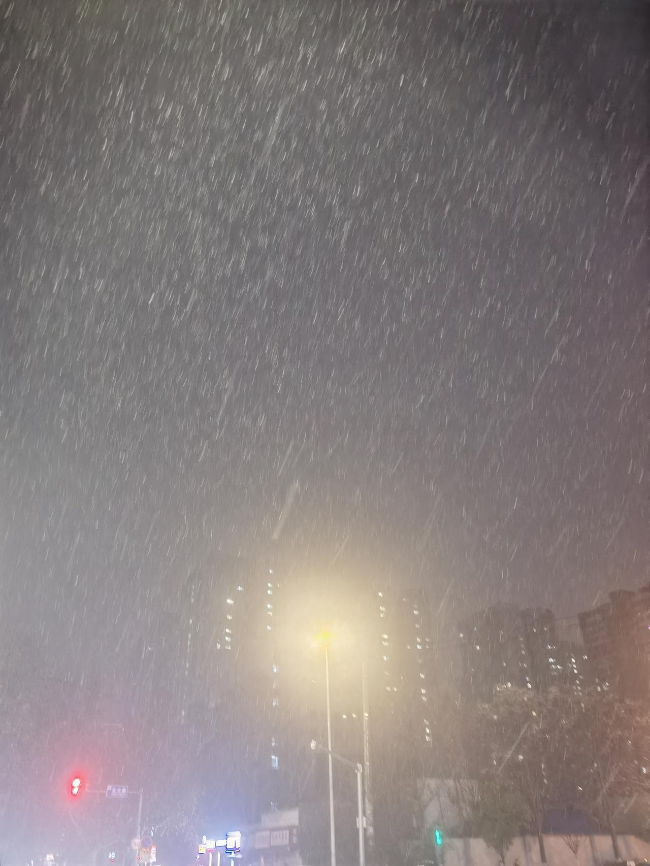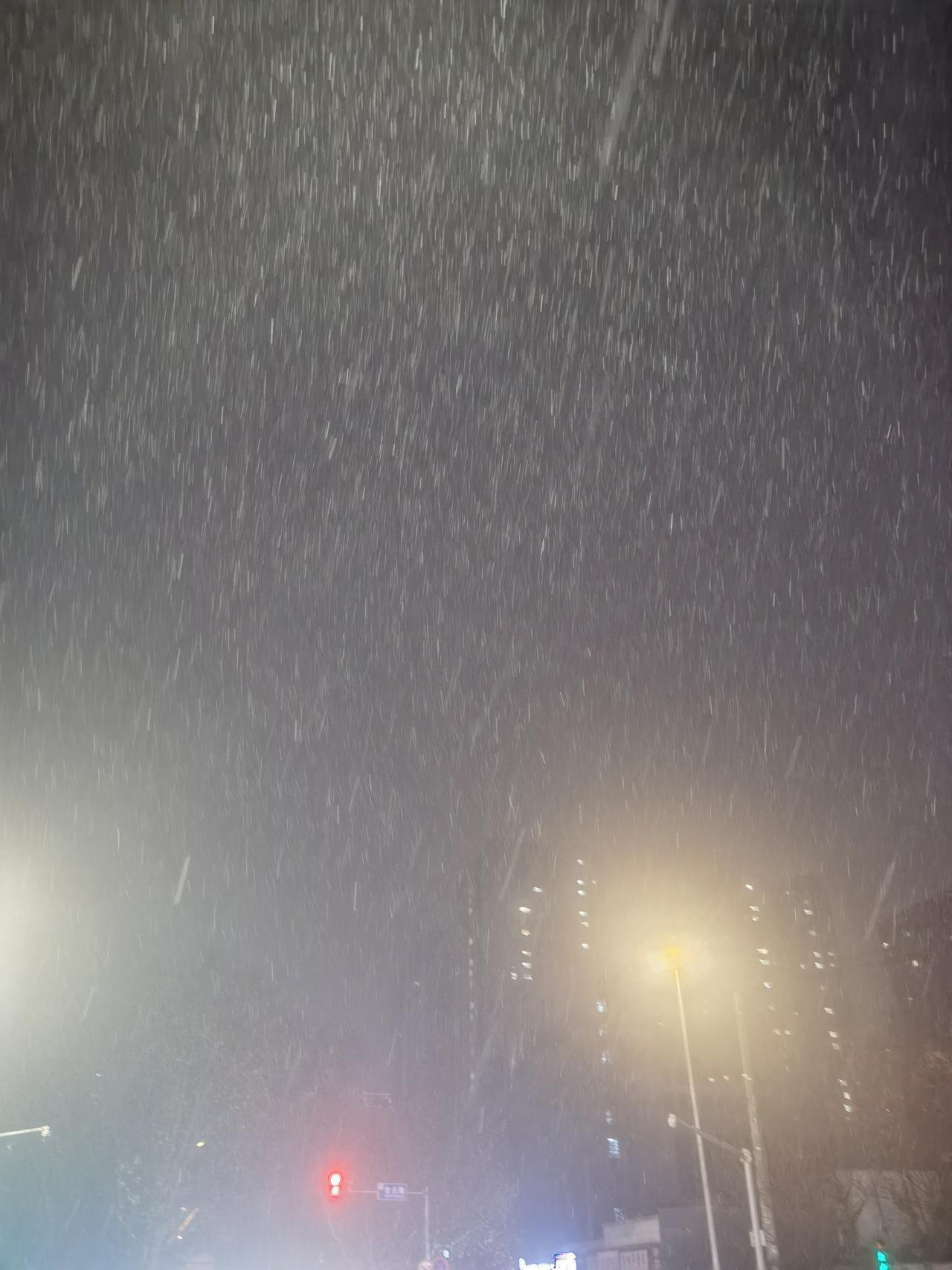 分享一张街景照片昨天晚上18:45分西安雪下的有点大!不过漫天大雪的感觉不多见,