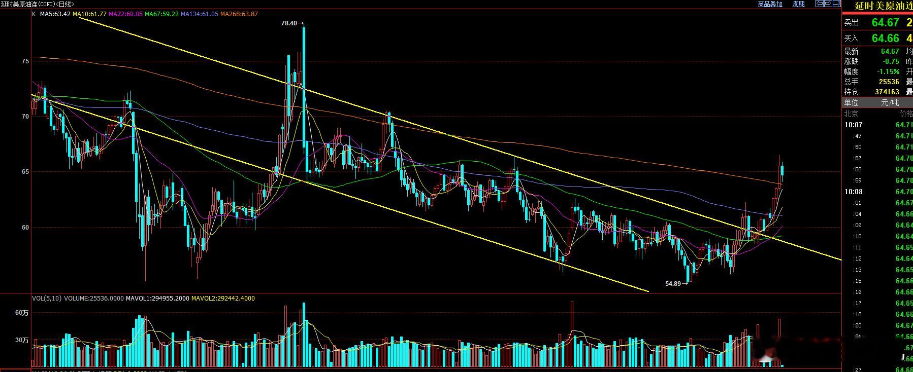 原油昨日最高触及66.48美元符合前期预判的 65-67区间的压力,短期会进入震荡期,有一定的震荡时间周期,震荡后原油短期还可以仍然继续看多。但持续上行压力就会逐步增加。后期只适合做短线!