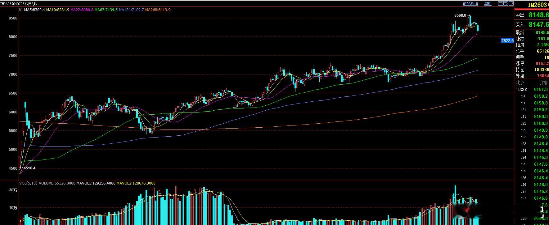 股指 IM昨日也给出了空头提示 IM主力合约短期指向8000一线 !