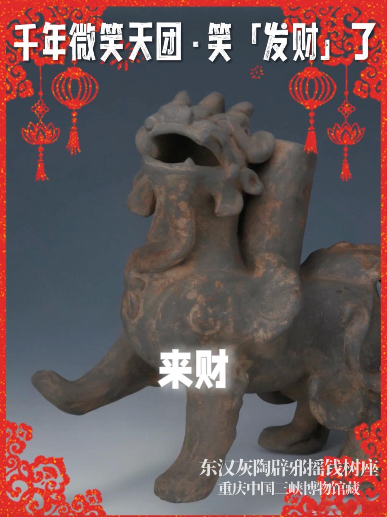 辟邪摇钱树这个真得接了 东汉摇钱树座开口送财也太萌了!一声声来财直戳心巴,这波文物新年祝福必须跪着接,财运直接拉满