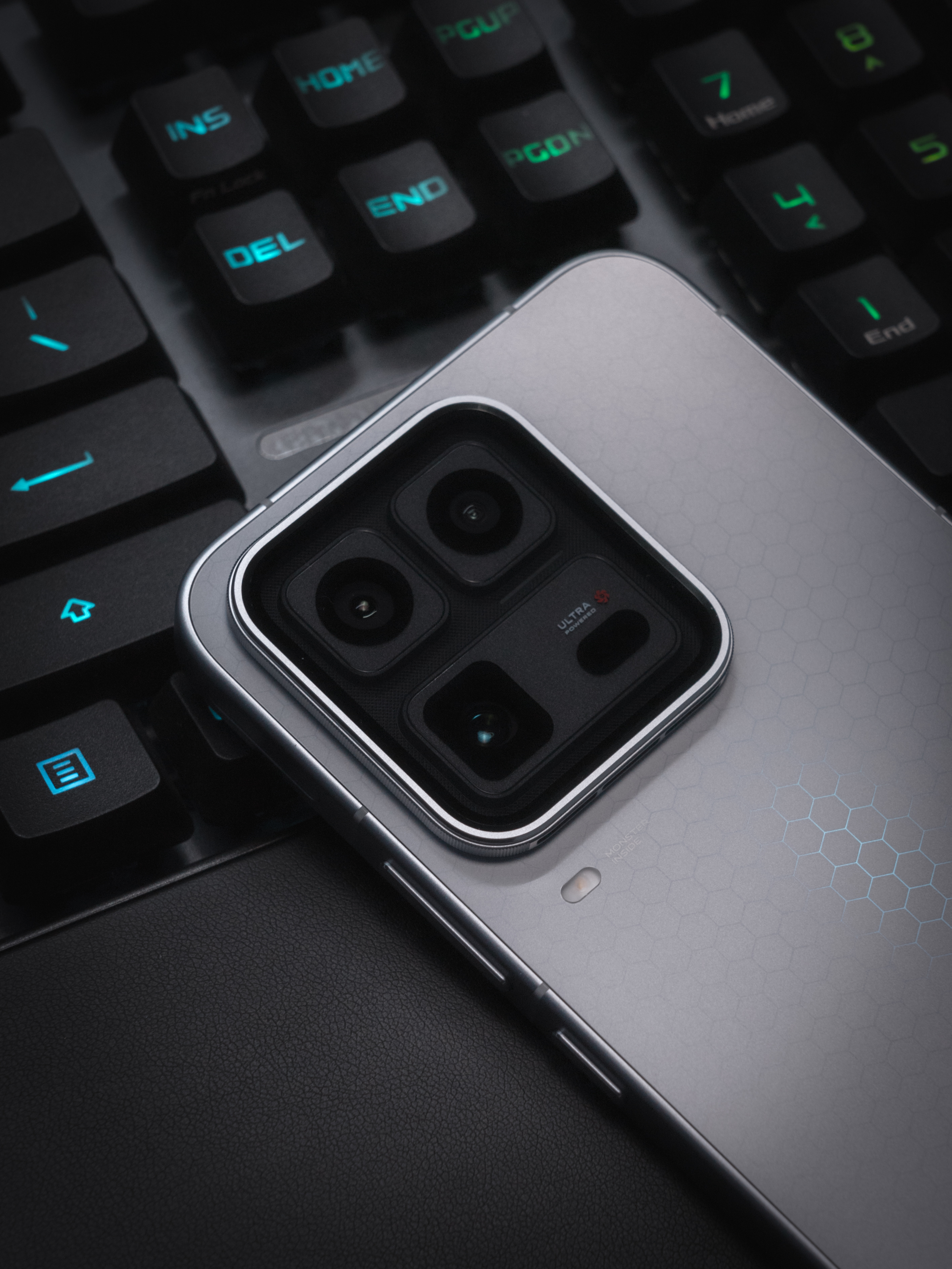 透明可视化的DECO悬浮设计,像是未来太空舱在机身后壳停靠一般,优雅和谐。DECO处还有蓝色「能量光刃」呼吸灯和“ Ultra专属标识“,细节拿捏到位。中框采用了喷砂氧化工艺,触感细腻高级,为质感加分。还有经典的L 型胶囊充电头也回归,边玩边充也不挡手。