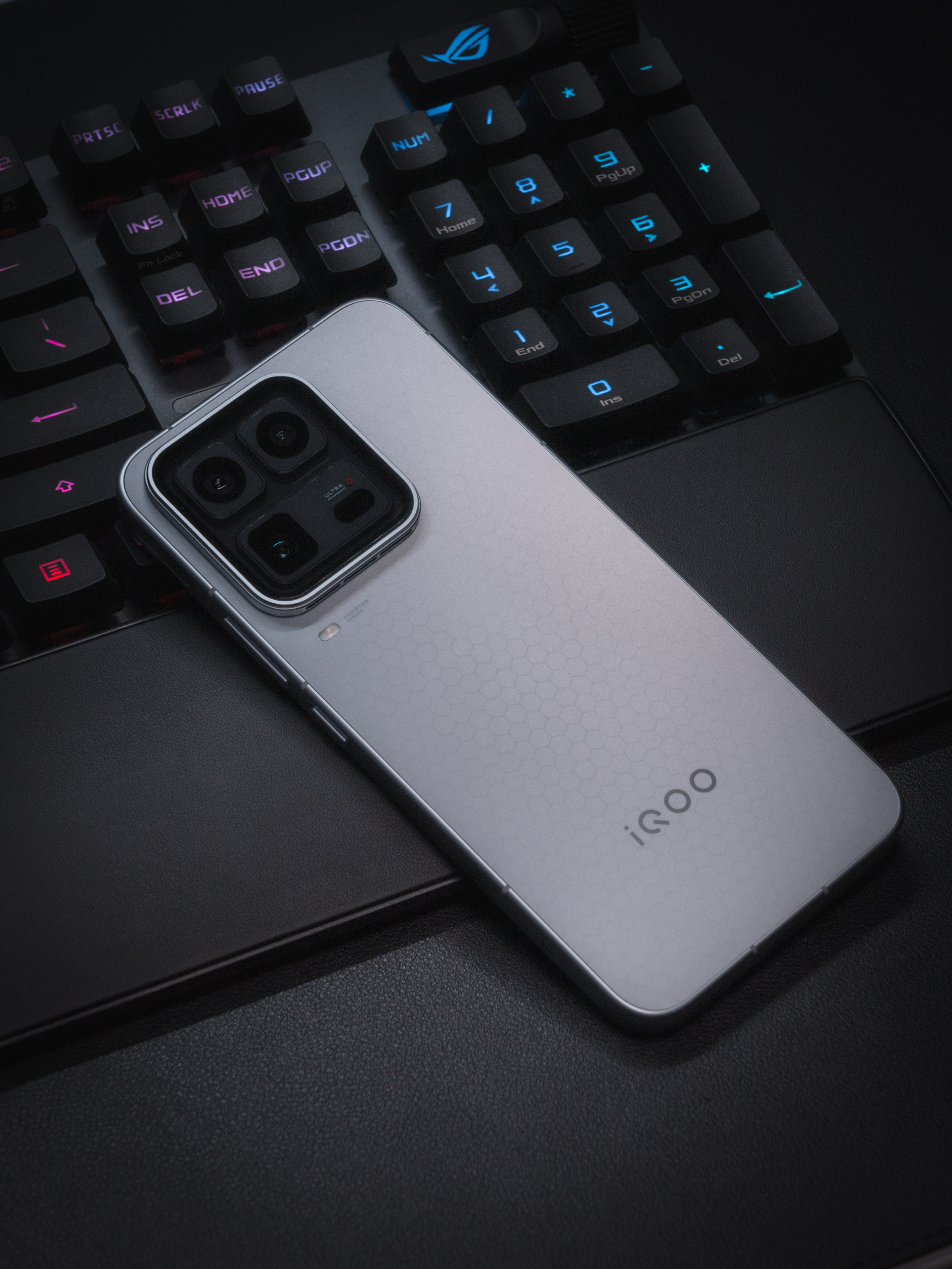 终于能有和我桌搭风格和谐的手机了,就问帅不帅? iQOO 15 Ultra先给大家看看真机实拍,行业首款“性能Ultra”产品气质确实不一般。「未来科技感」迎面直扑而来,致敬《银翼杀手杀 2049》,哑光银机身后盖,自带冷冽气息。蜂巢纹理设计的能量矩阵流转的寒光蓝,仿佛刚刚苏醒的未来战士一般。
