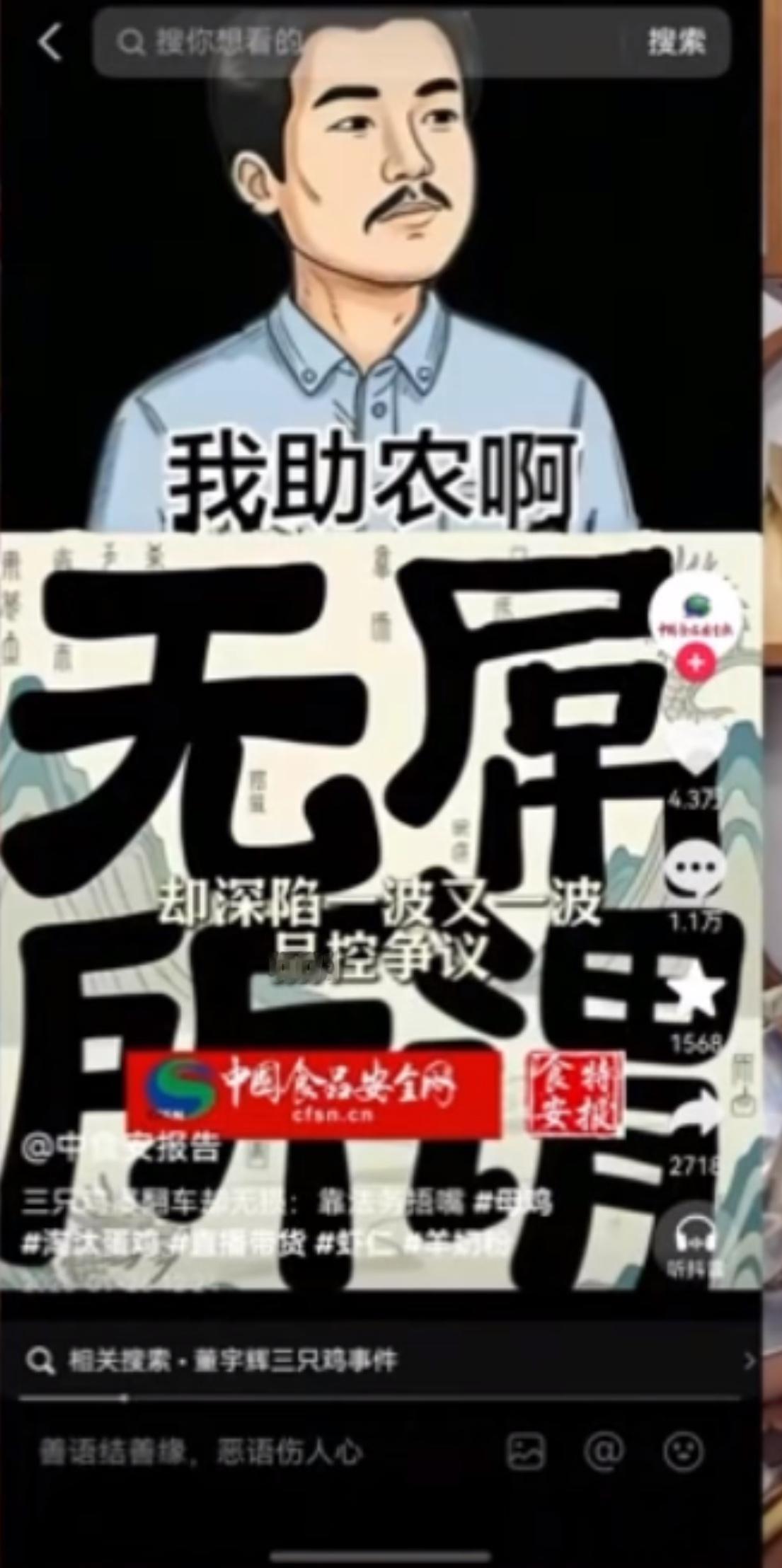 官方媒体发声明力证自己“血统”纯正, 这恐怕是第一遭。 昨天我还在求网友给我答疑解惑, 《中食安报》到底是不是官媒, 结果昨天就看到了他们发布的说明函, 还有当初入驻抖音平台的时候, 《中国食品安全报》盖公章的证明。 哦,这是在自证自己身份, 并非企业蓝V的官媒, 也不是什么自媒体账号。 至于是不是官媒, 我们也不懂, 但是我想问一下, 官媒是具有权威性的, 曝光的内容证据确凿, 而且公信度十足, 发布的内容积极向上, 而且是直接又文明的。 但是我看了一下他们账号的内容, 什么“无屌所谓”这些违背公序良俗的词汇都出现在视频里, 视频内容不是有理有据实锤, 而是拉踩和阴阳怪气。 这是官媒? 我还真的不敢相信。 官媒是权威的, 不会和对个人或者对企业阴阳, 那些不堪的词汇也不会出现在视频里。 所以这个所谓的“自证”没有什么真实性。 有人扒了一下, 和这个《中食安报》有关联的还有一个企业, 名字叫《因季领选》, 资料显示, 这个公司是《中国食品安全报》的下属单位。 《因季领选》主营直播带货, 法定代表人 是“郏功献”, 这个名字我倒是不陌生, 不就是去年爆料陕西秦岭黑木耳的那个什么记者吗? 是曾经网红“张大炮”的密友。 看到这里, 我顿悟, 一切皆是有迹可循, 爱恨没有无缘无故的, 所谓的“官媒”, 所谓的自证, 可信度到了这里, 恐怕是要大打折扣了。 当然, 这些是我根据资料显示的分析, 这个《食品安全报》到底是是不是官媒, 这个什么记者在里面又担任什么职务, 在这次的“鸡”风波里, 他又扮演什么角色, 那就不得而知了。 本文章纯属个人观点, 并非事实真相, 大家合法质疑, 理性吃瓜。 散会! 董宇辉