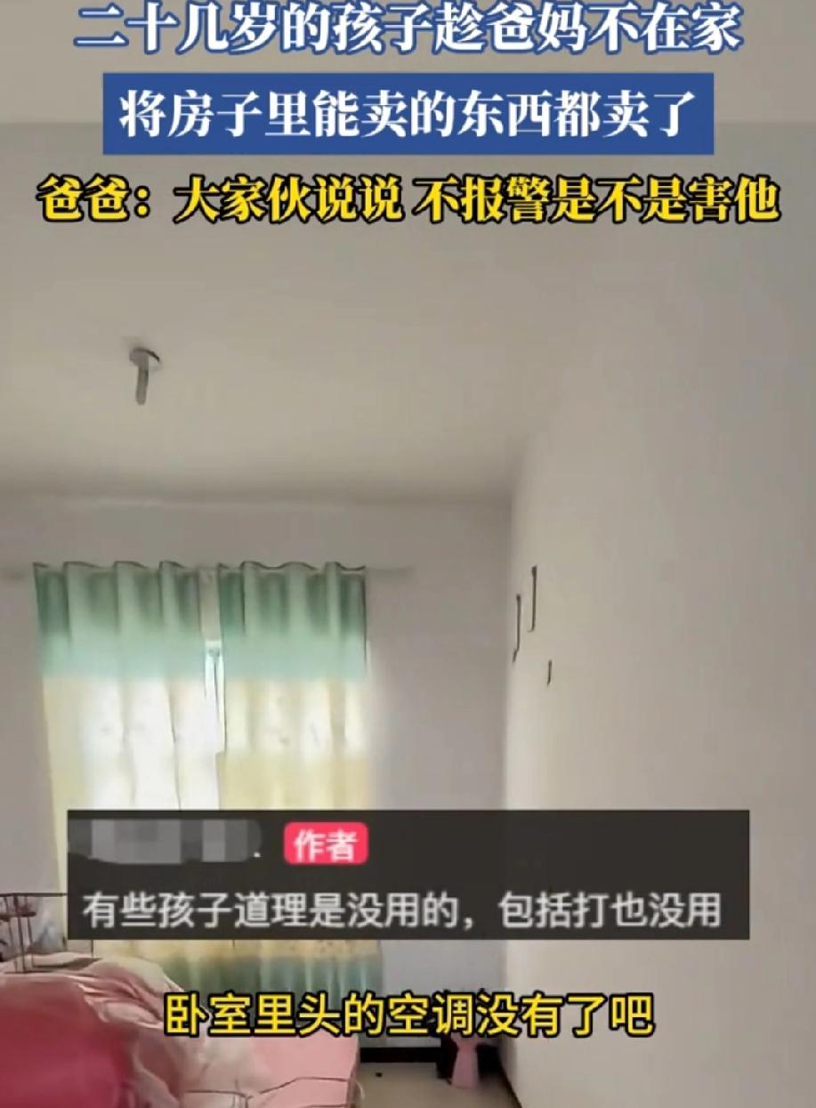 真是纯纯的坑爹货啊,讨债的! 浙江,一个二十几岁的孩子,趁着爸妈不在家,将房子里能卖的东西都卖了,空调、冰箱、冰柜、电视机都卖了。 这一进门,不知道还以为进贼了,能卖得电器都卖了,就剩个房了。这么狠,这是赌博还是吸毒了?再下一步卖房了,然后嚯嚯俩老口器官了。真是造孽啊! 现在打骂教育已经没有用了,更何况二十多岁再打也不好看。这孩子算是废了,直接报警。让专业的教育他,让他好好反思反思自己的行为,明白什么该做,什么不该做。等他出来后,希望他能洗心革面,重新做人。 也希望这件事能给其他家长提个醒,在孩子成长过程中,一定要注重品德教育,不能只关心孩子的学习成绩。不然等孩子长大了,做出这种坑爹的事,后悔都来不及。