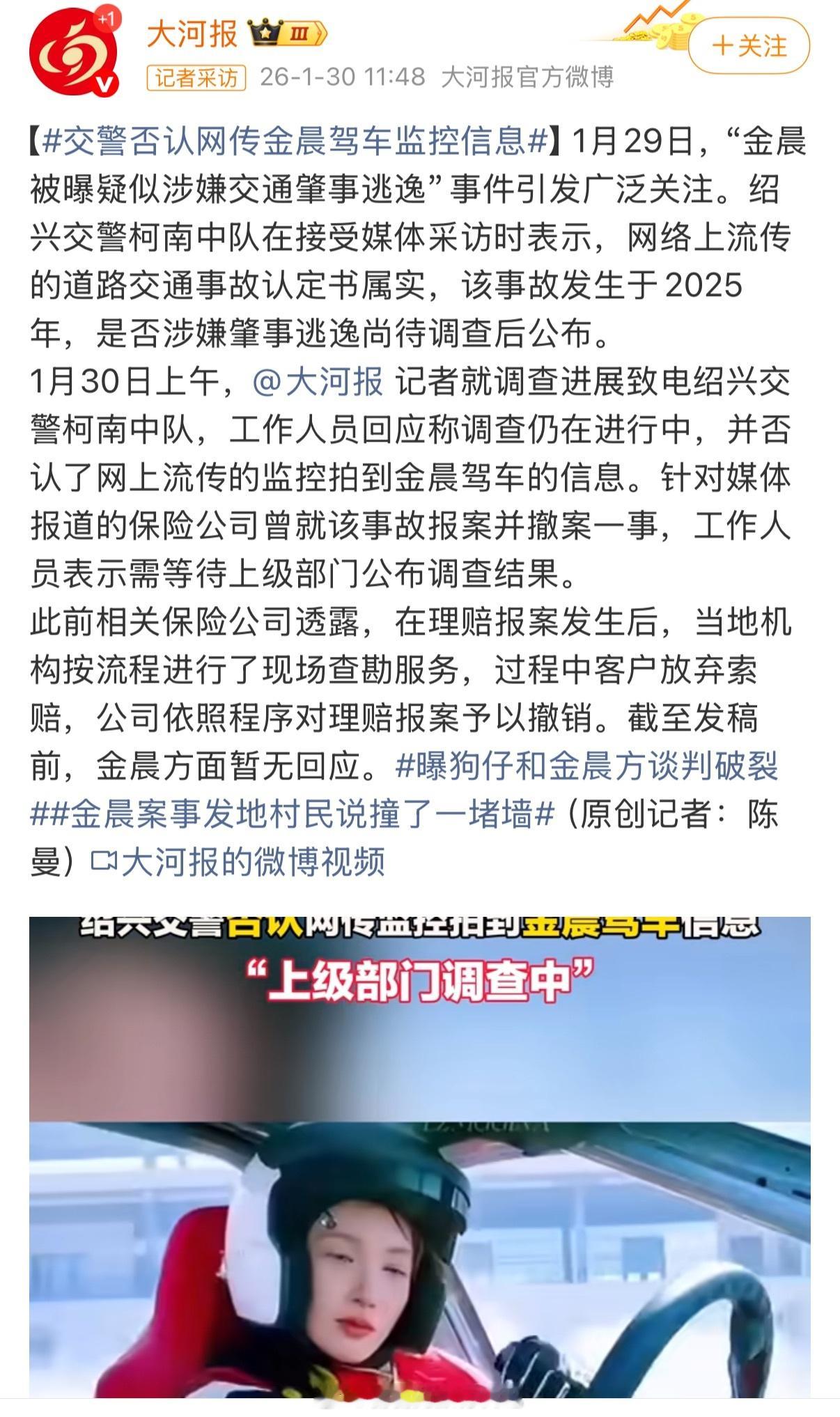 金晨这事,又有进展了。大体就是,交通事故后,保险公司在理赔时,调取监控,发现金晨