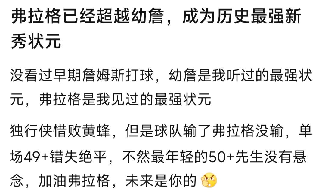 今天弗拉格49分,有人吹捧他是史上最强状元,超越幼年詹姆斯。 我想说乔丹第一个赛季场均28.2分,这个才是史上最强新秀。 弗拉格目前场均19分差距好远,最多追上詹姆斯,距离乔丹很远呢。[思考]