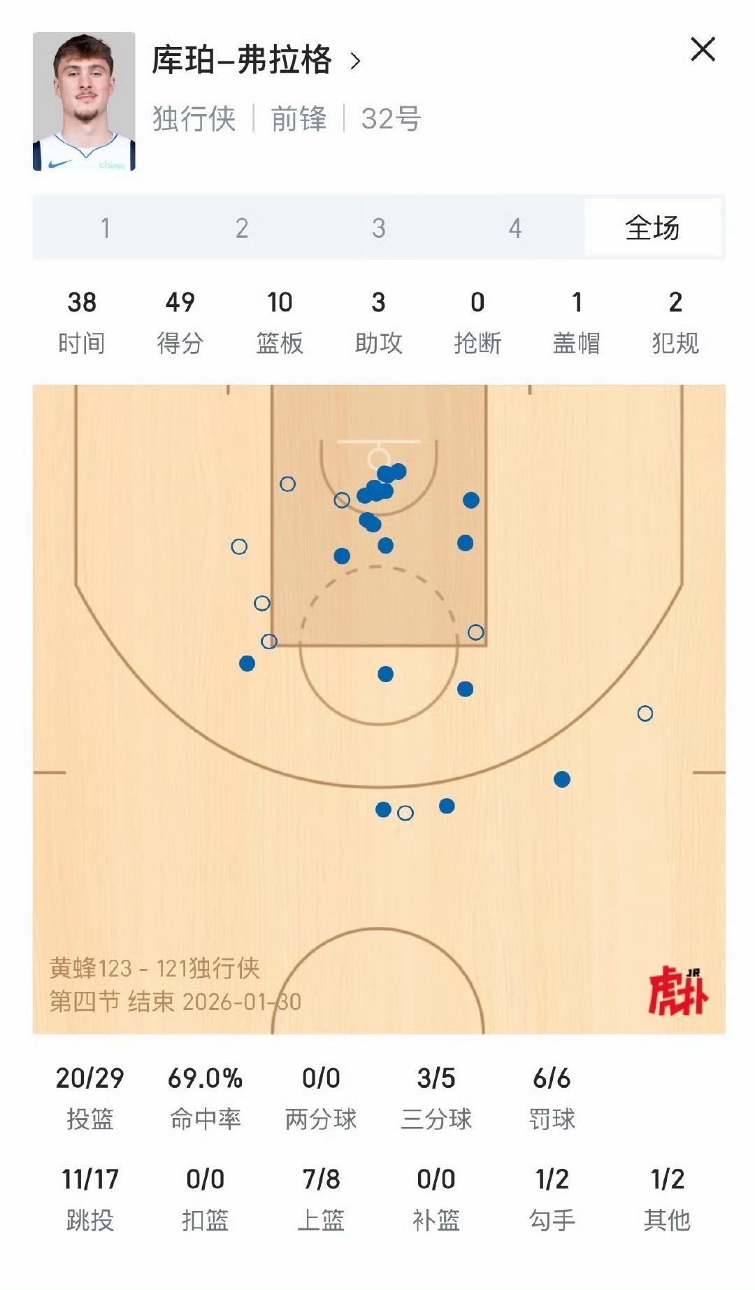 今天弗拉格表现怎样?今日NBA最佳? 49分,最后一投没中,否则能赢。 去年NCAA总决赛,他也是绝杀失败。 看来今天噩梦重演呀,还需锻炼。[笑哭]
